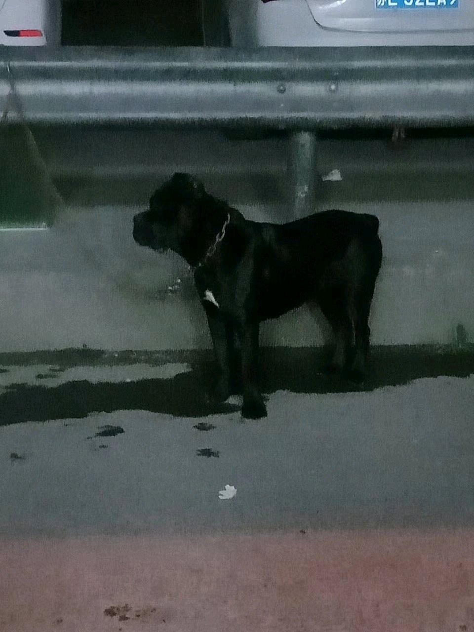 我的狗脖子带着是铁链子。卡斯罗胸口有片白