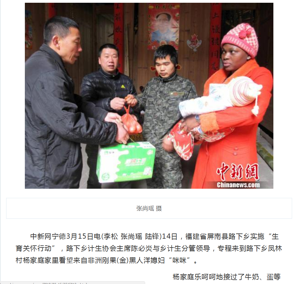 工作人员上门看望中国黑媳妇