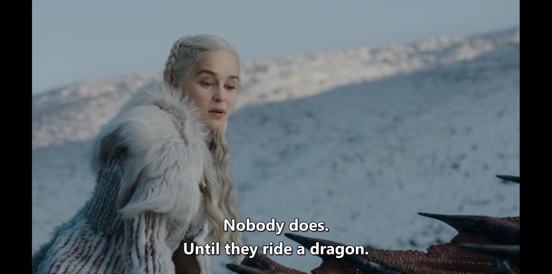 也可能是jon骑上去被龙摔死了弄死了,不配。不配就是不配,要么能骑龙,那就继续活着,配上龙母。要么死了,那就是不配龙母,也不必留在世上,龙母也have enjoyed了他生前这段时间的company了。对jon来说是没有退路的,必须得骑龙,骑不了就去死吧,龙母也不需要配不上她的人,骑得了就继续陪龙母。