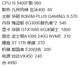 - 显卡:』映众1660ti 6G=1999
