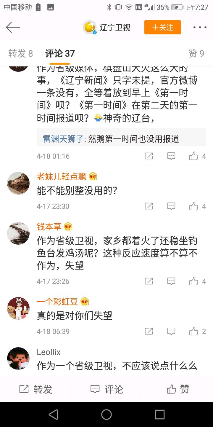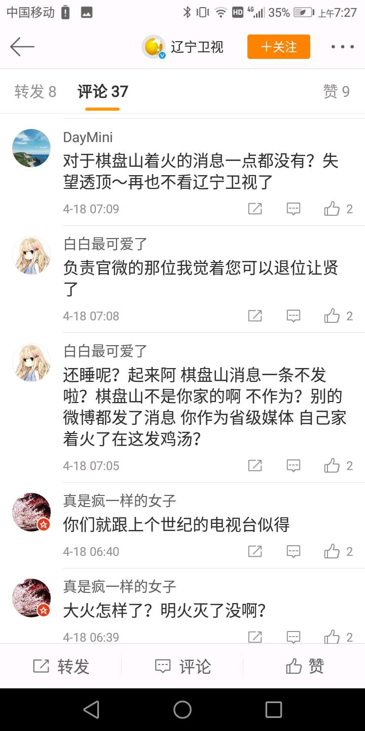 第一次发贴,辽台,棋盘山大火没有报道,官博天天发那个破鸡汤~