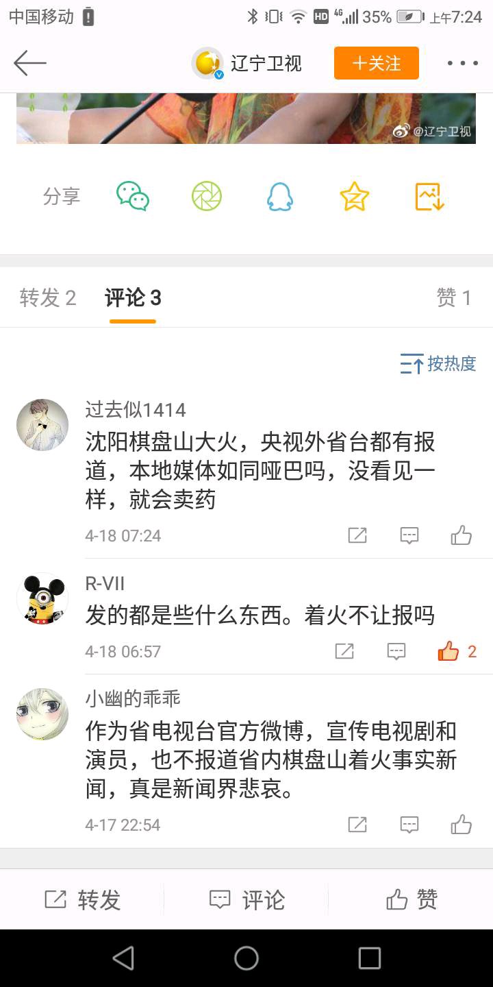 第一次发贴,辽台,棋盘山大火没有报道,官博天天发那个破鸡汤~,****,看看大家评论