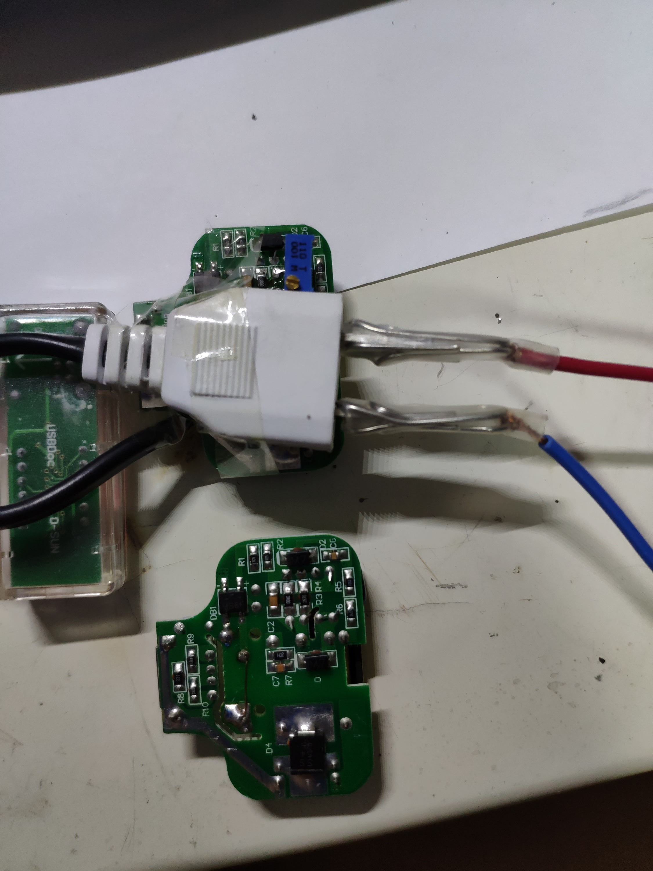 首先拆一个手机充电器,这里我是以前淘宝买的5V2A手机充电板,芯片是PS2536,根据百度,它和OB2538可以替换,而由OB2538资料我们又知道其脚位