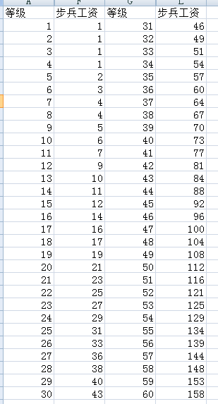 假设一个兵种初始工资为a