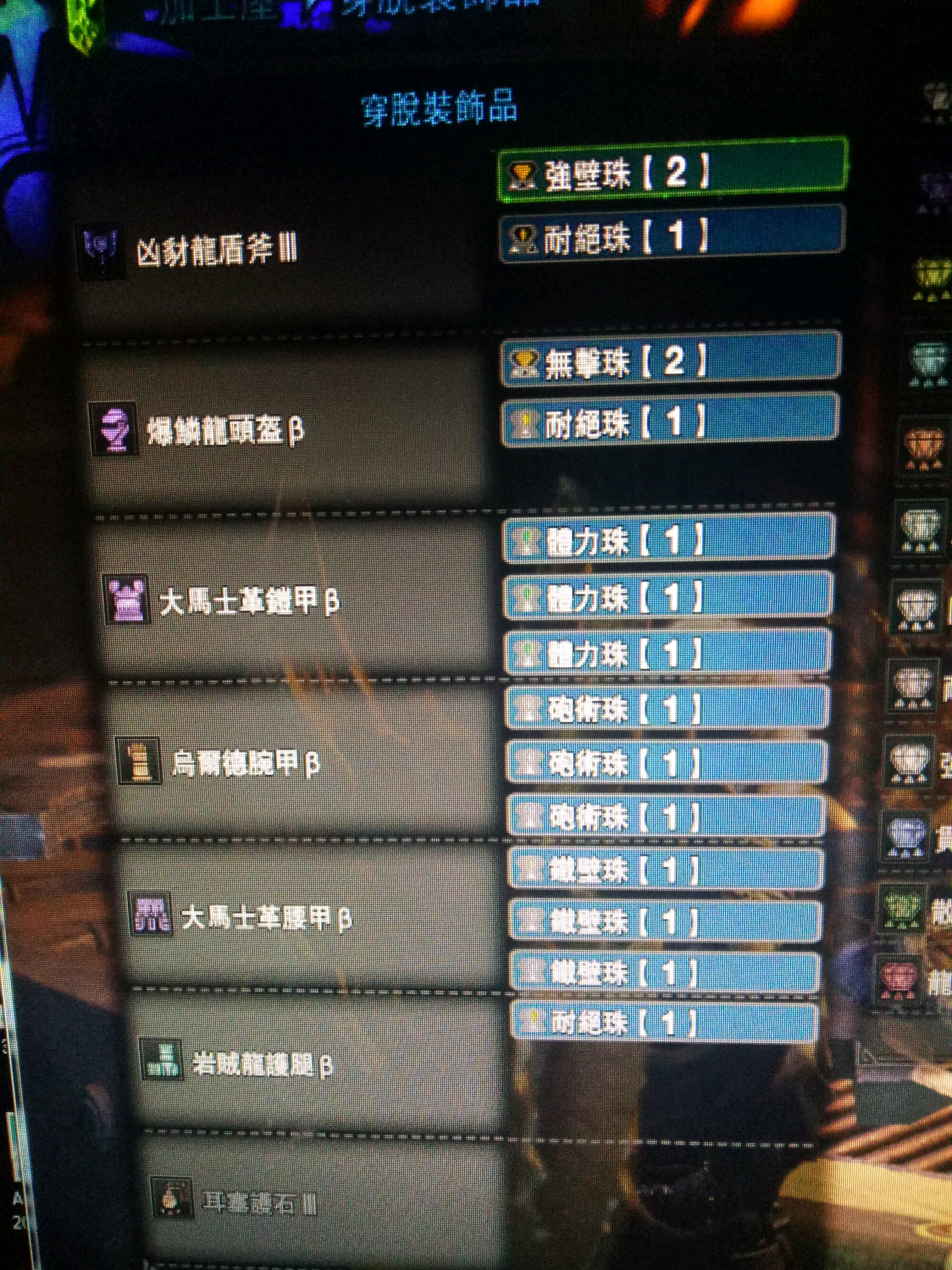 求个打贝爷用的盾斧配装 最好是防性5,强防,增弹,心眼,
