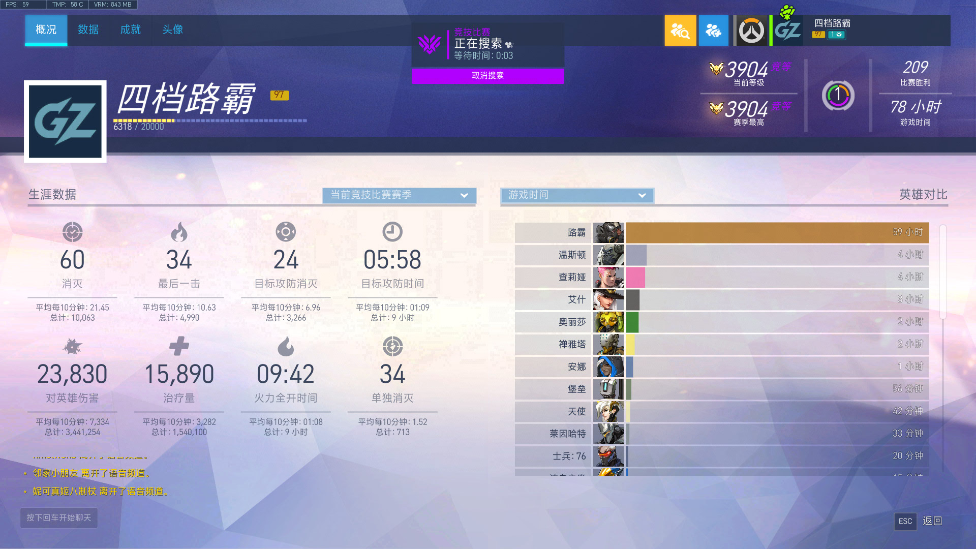 主路霸玩家,55小时KDA4.1,想找个3300左右的奥丽莎一起玩哈,ID:四档路霸#5620