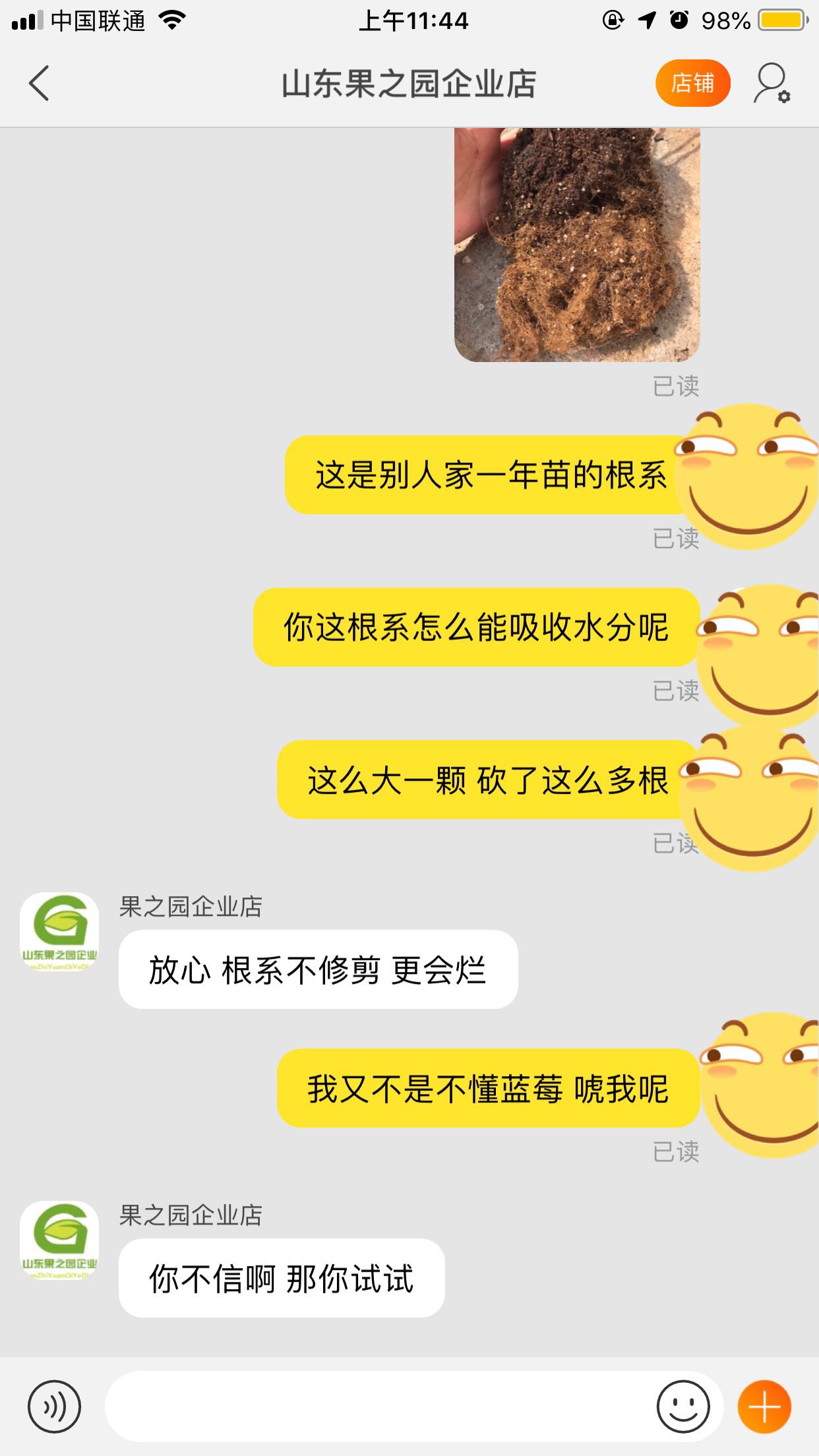 当时买的时候不懂 买了这家店的神苗 后来进了贴吧后才知道 已经收货一个月 仍然能申请售后 我先是和店家沟通 无奈这家店客服太牛逼 一气之下申请售后 说明根系被砍大部分养不活 淘小二会判你赢的