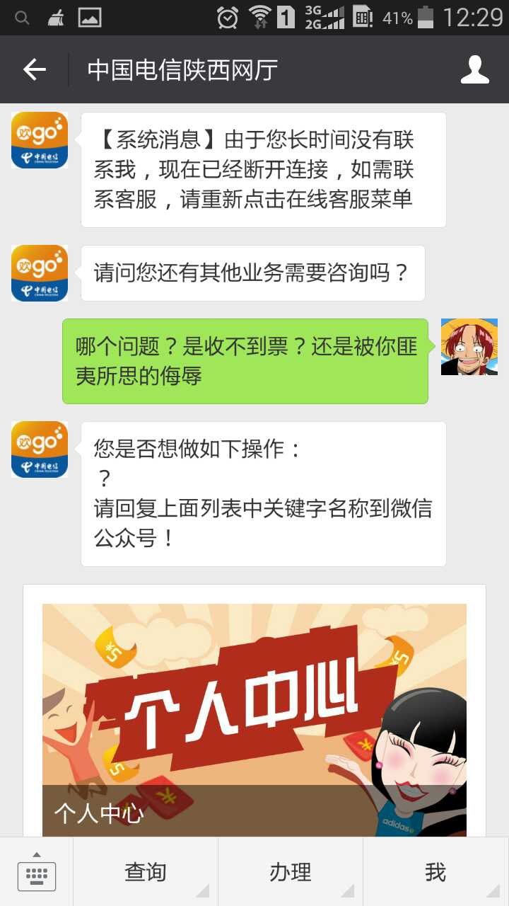 陕西电信的手机APP污辱谩骂客户记录!