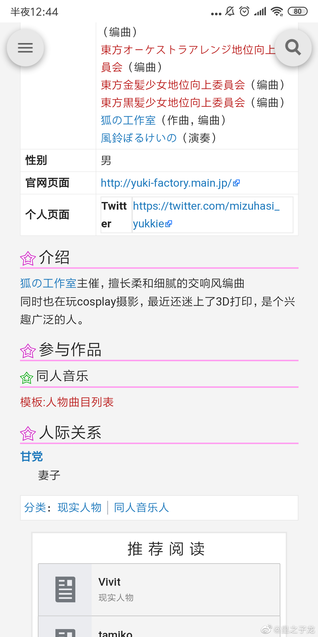 甘党和水橋两位大家应该比较熟悉,水橋是交响风同人音乐社团狐之工作室的主催(男性),编曲水平非常之高,幻奏盛宴也有他的供曲。甘党(女性)是邻家吸血鬼的作者,多年来一直给狐工的专辑画封面,同时也经常进行东方同人创作。
