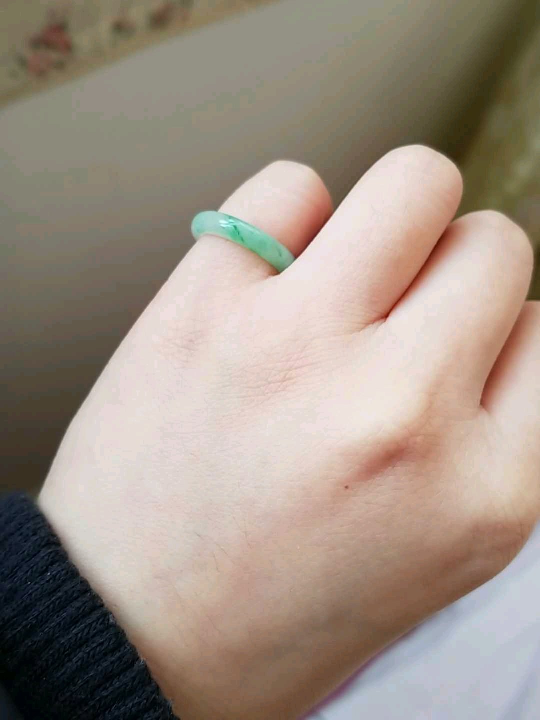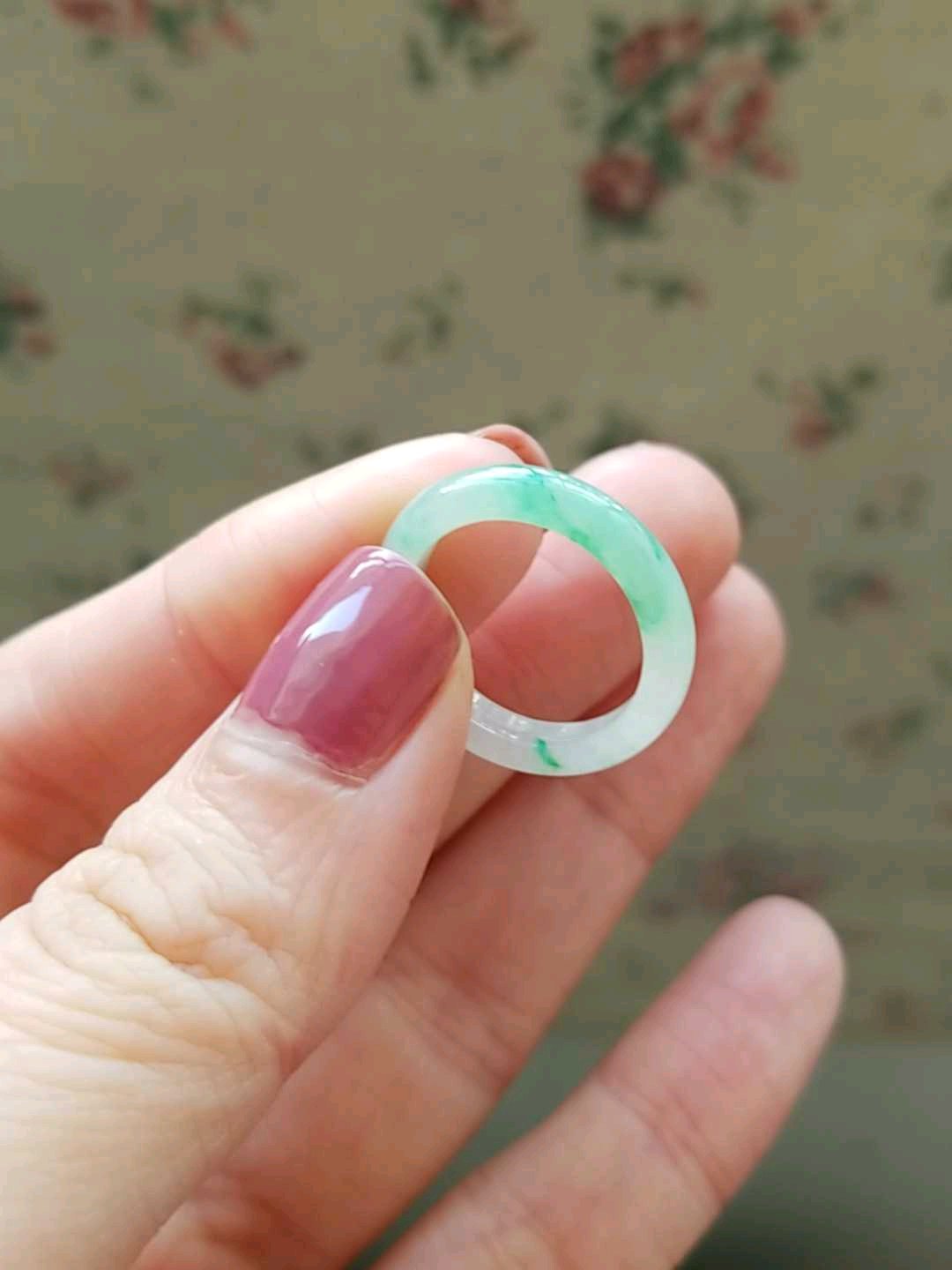 白底飘绿花,绿色很灵动很鲜阳,有一点已经到辣绿了,白底很细腻,无纹裂