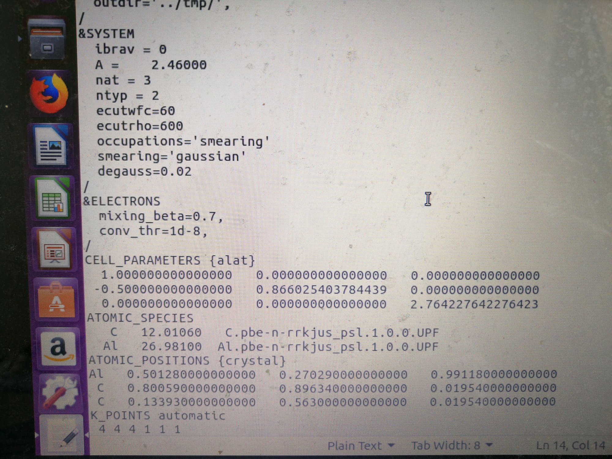 用这种方法算出Ga吸附能,然后在输入文件里把Ga换成Al,再把Ga的赝势改成Al的赝势,用同样方法算出Al和石墨烯的吸附能