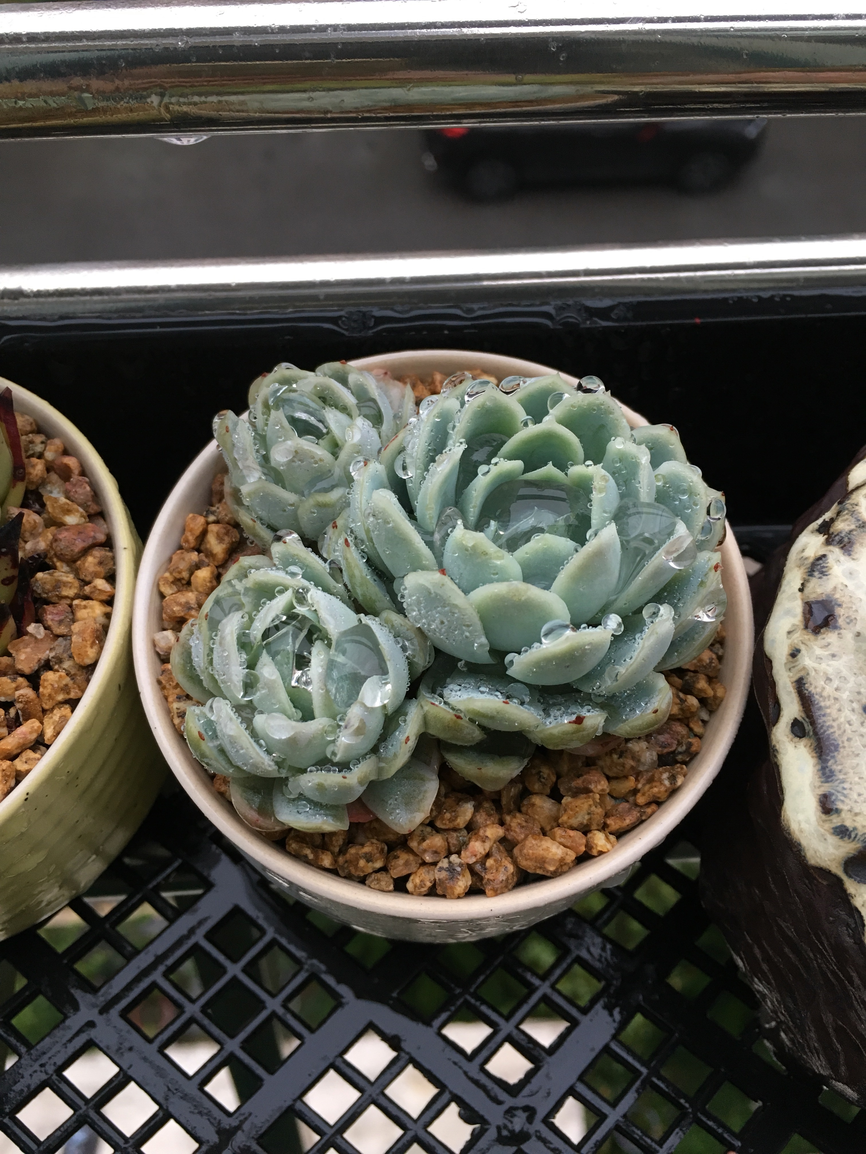 冰梅彻底绿了 感觉冰梅也好多种基因 这个绿归绿 但是不摊 另外我还有两个群生淋了几场雨已经摊的不行了