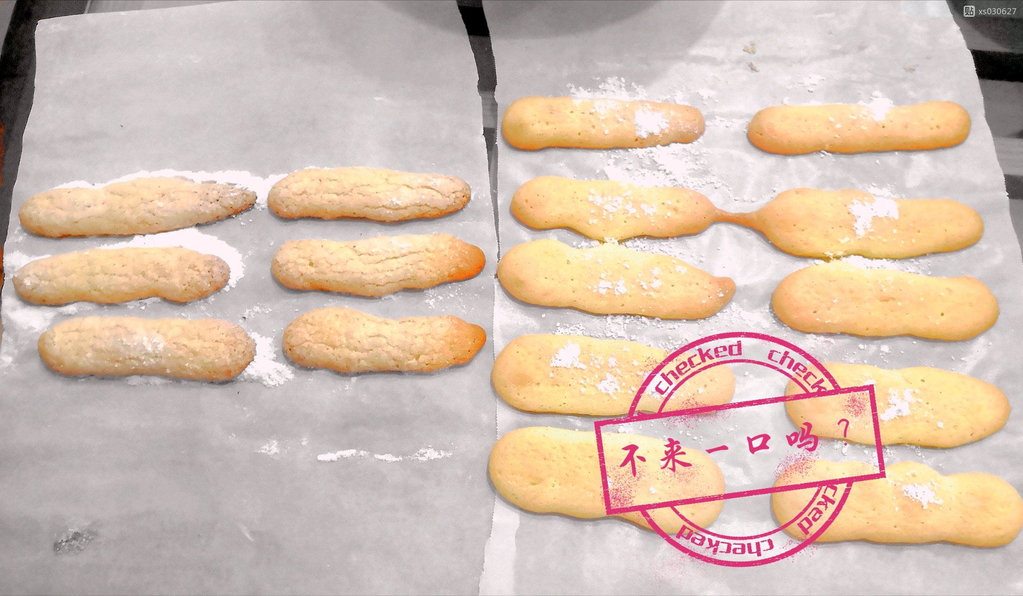挤出来的形状真的是……大小不一,还总是忘记撒糖粉。糖粉有一点吸水的作用吧。