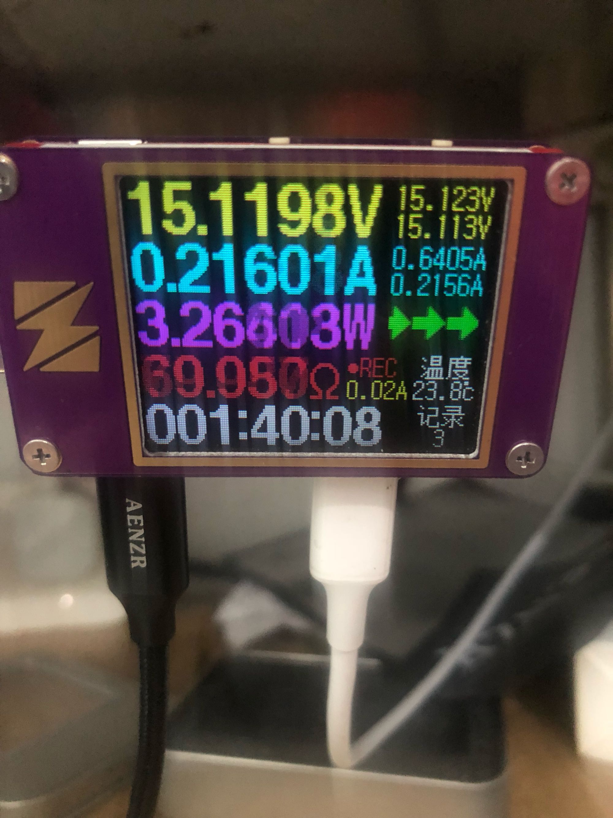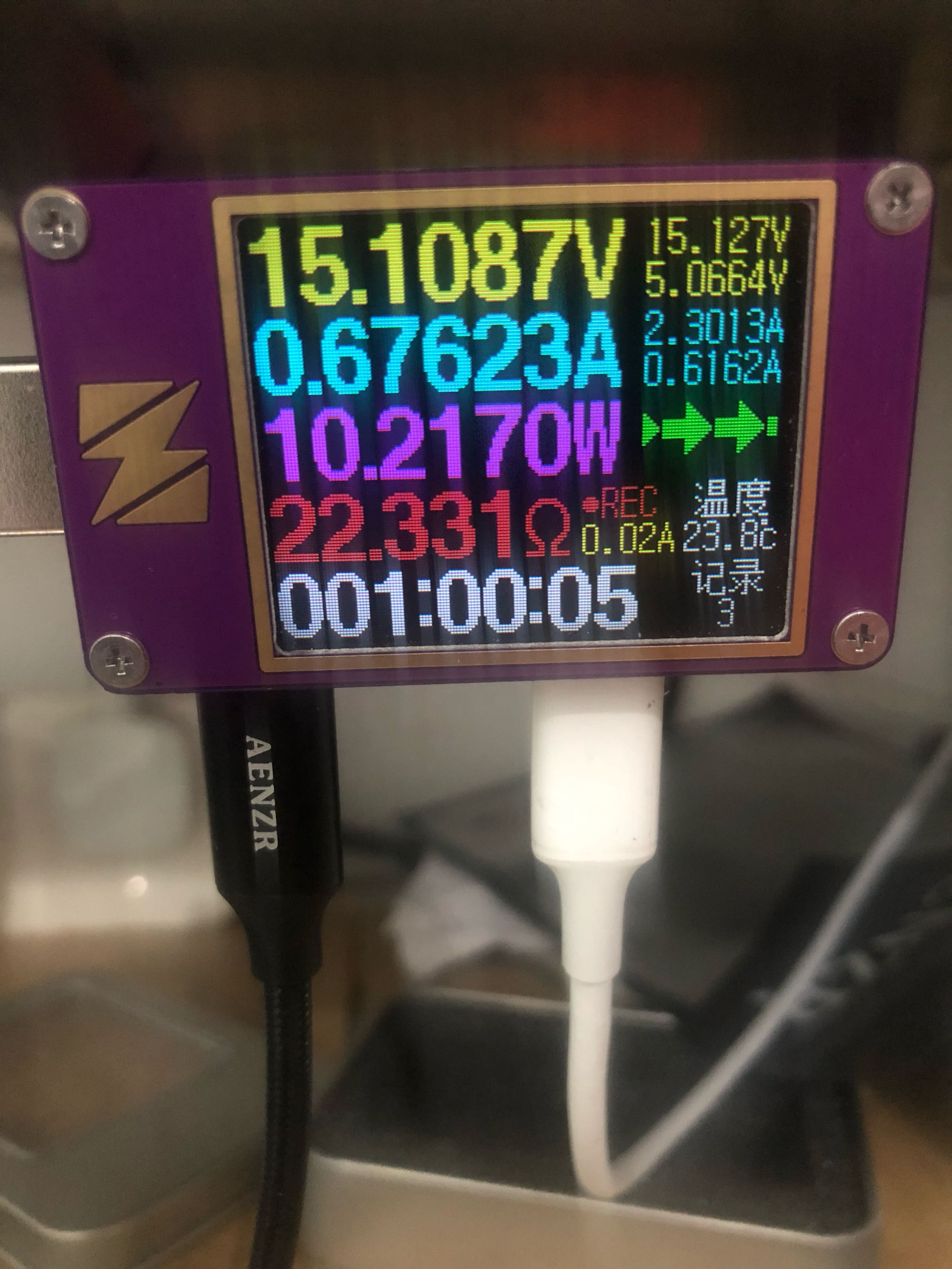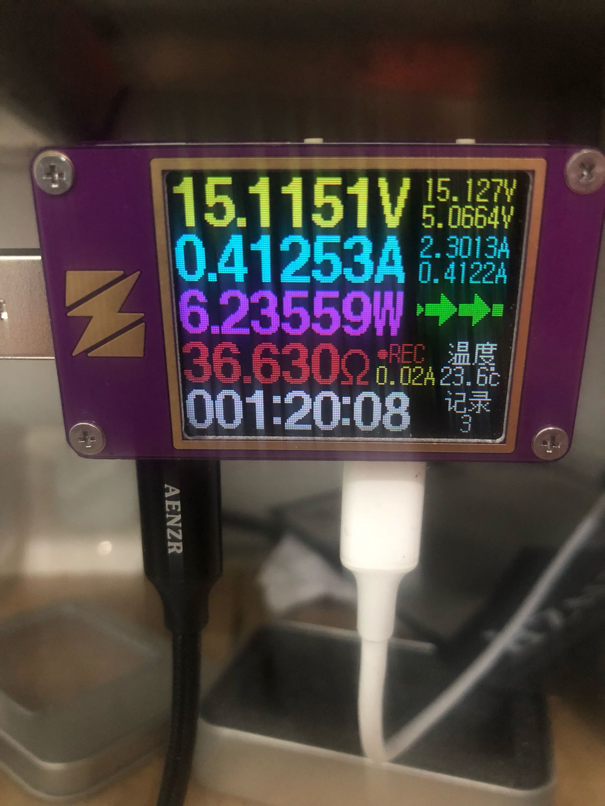 表上电压都15v了,肯定是pd快充,线是绿联的CL线