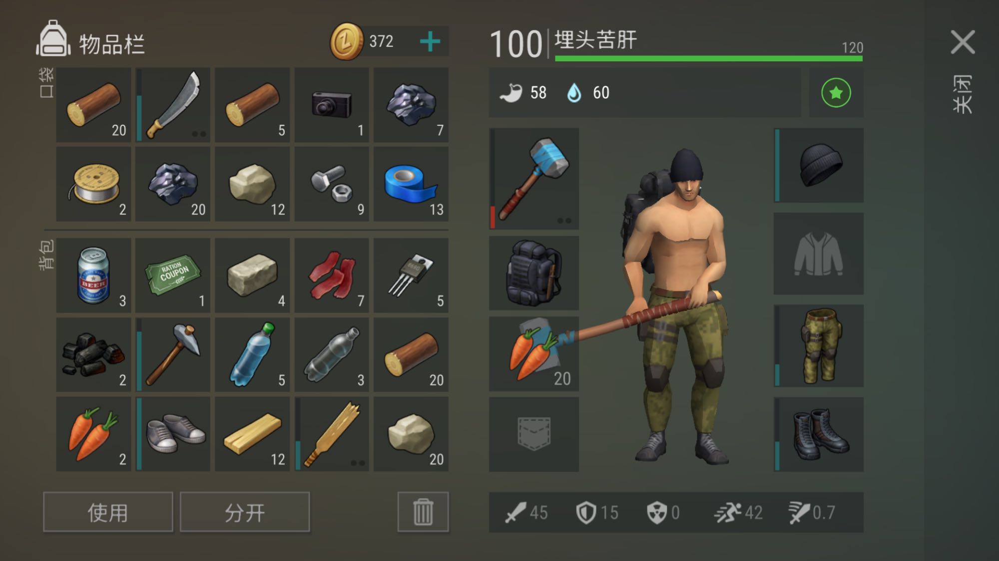 每次只带一组木、石头,一个二级斧,开局3家飞走2家就这家了,固定刷十几次了