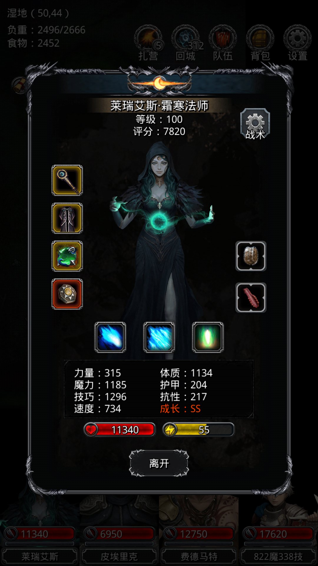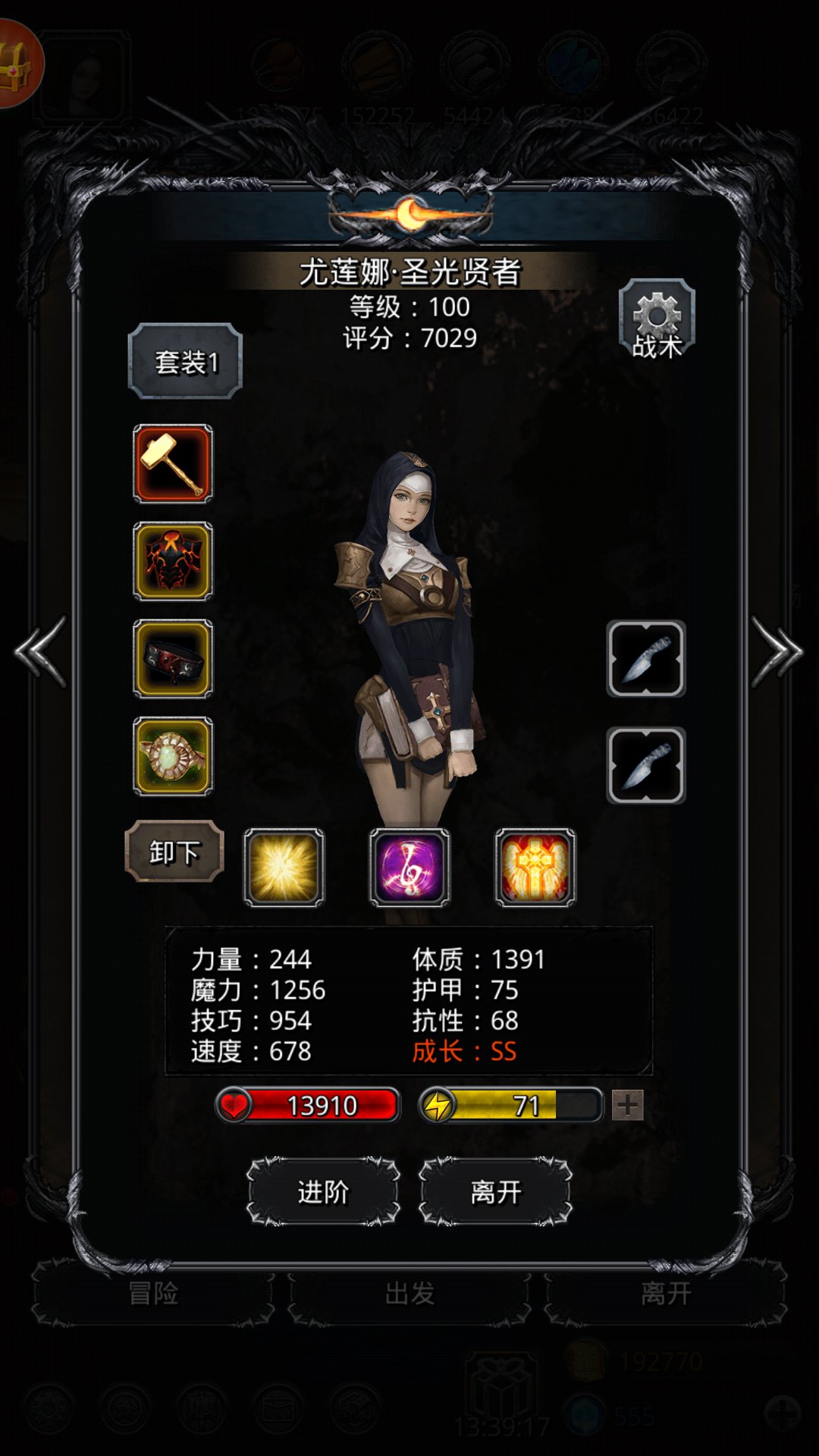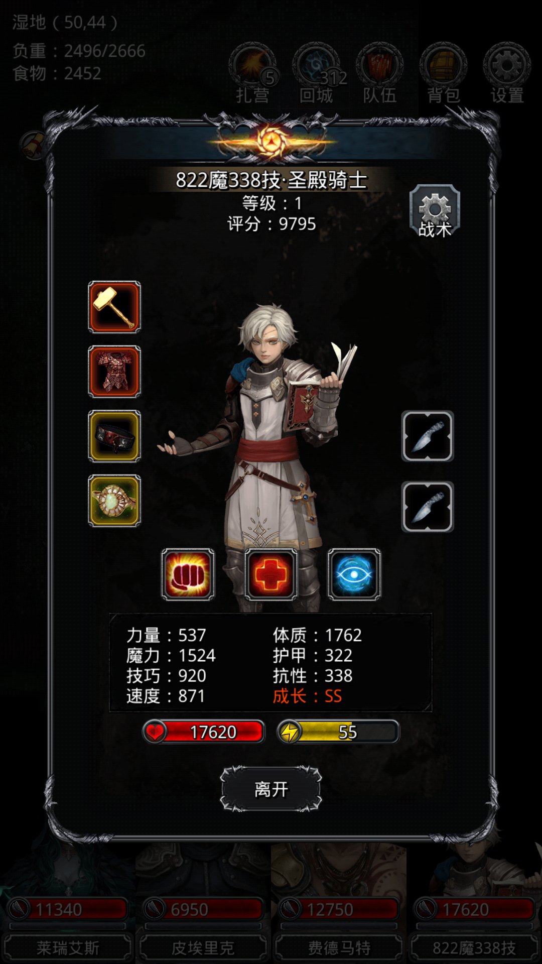 图三左上教皇:黑骑不能断嘲讽,只开晕,攻血量最高;圣殿65,85治疗开晕,攻血量最高;冰法40,60治疗只开晕,攻击血量最高;