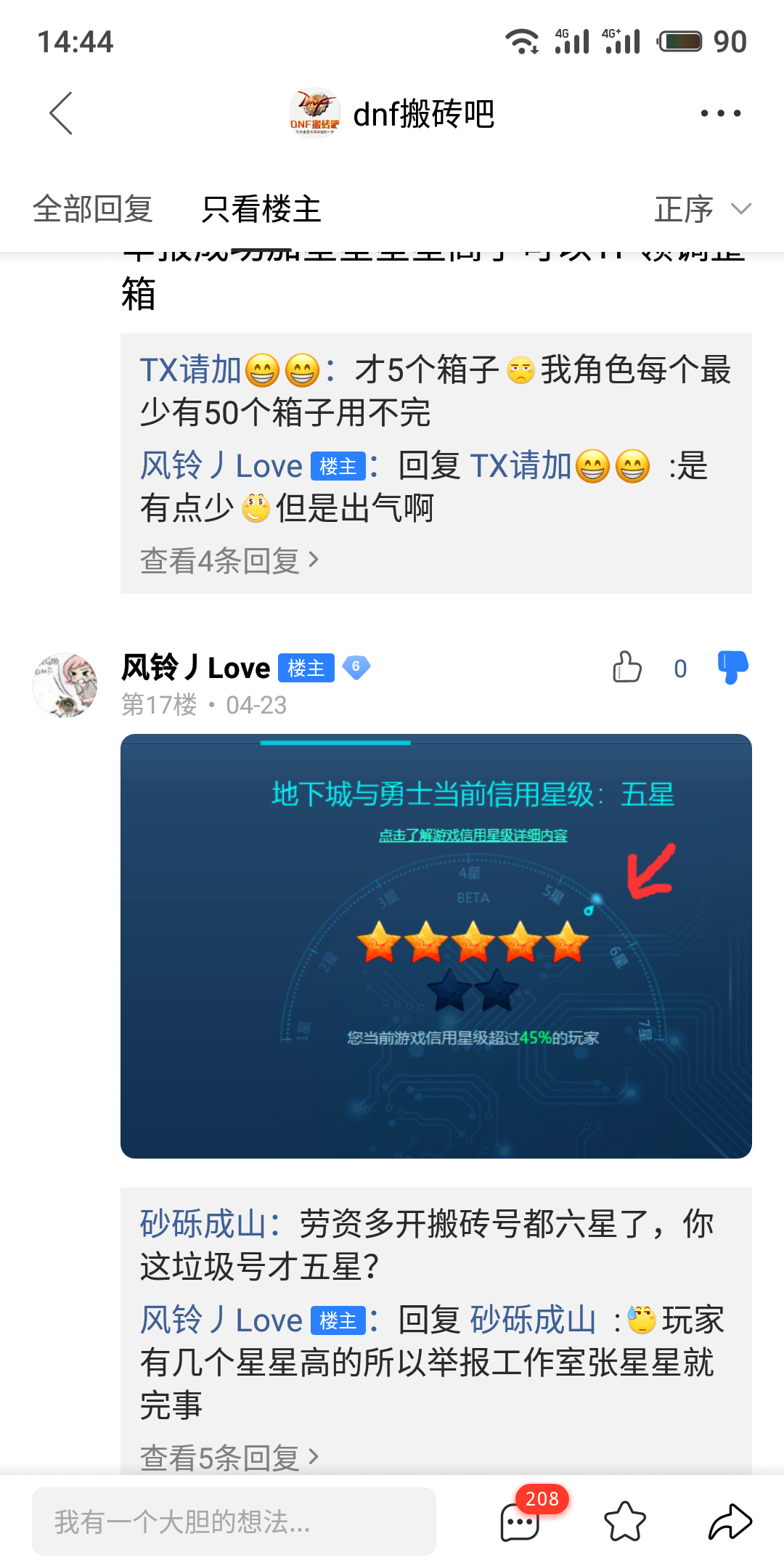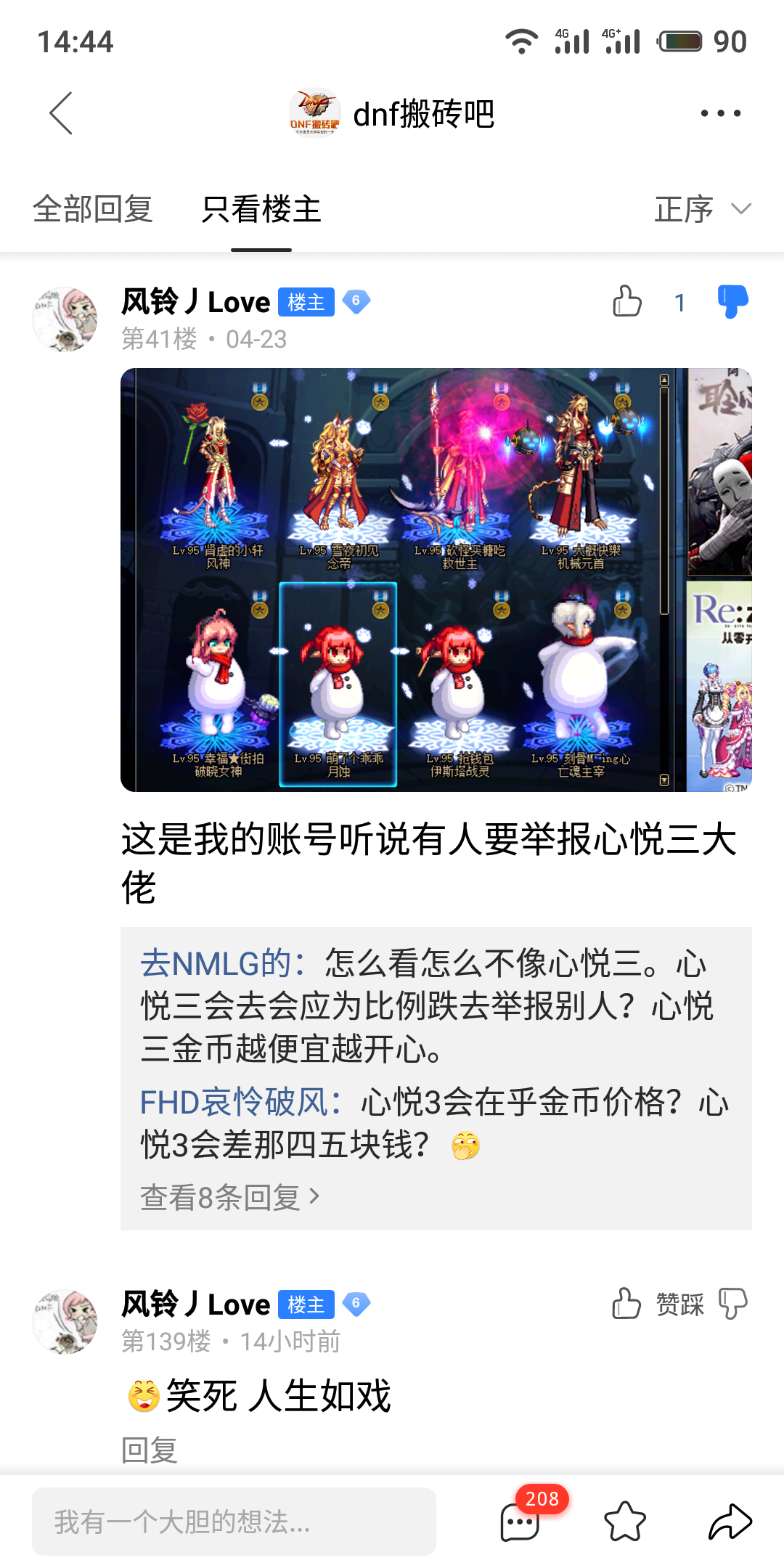 你看第三张图,还去逆水寒吧安利DNF,整得和发展新大陆一样🤩xswl