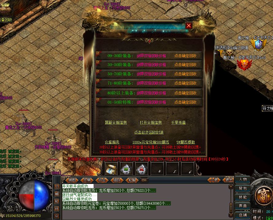 求大神这个传奇回收命令怎么写啊