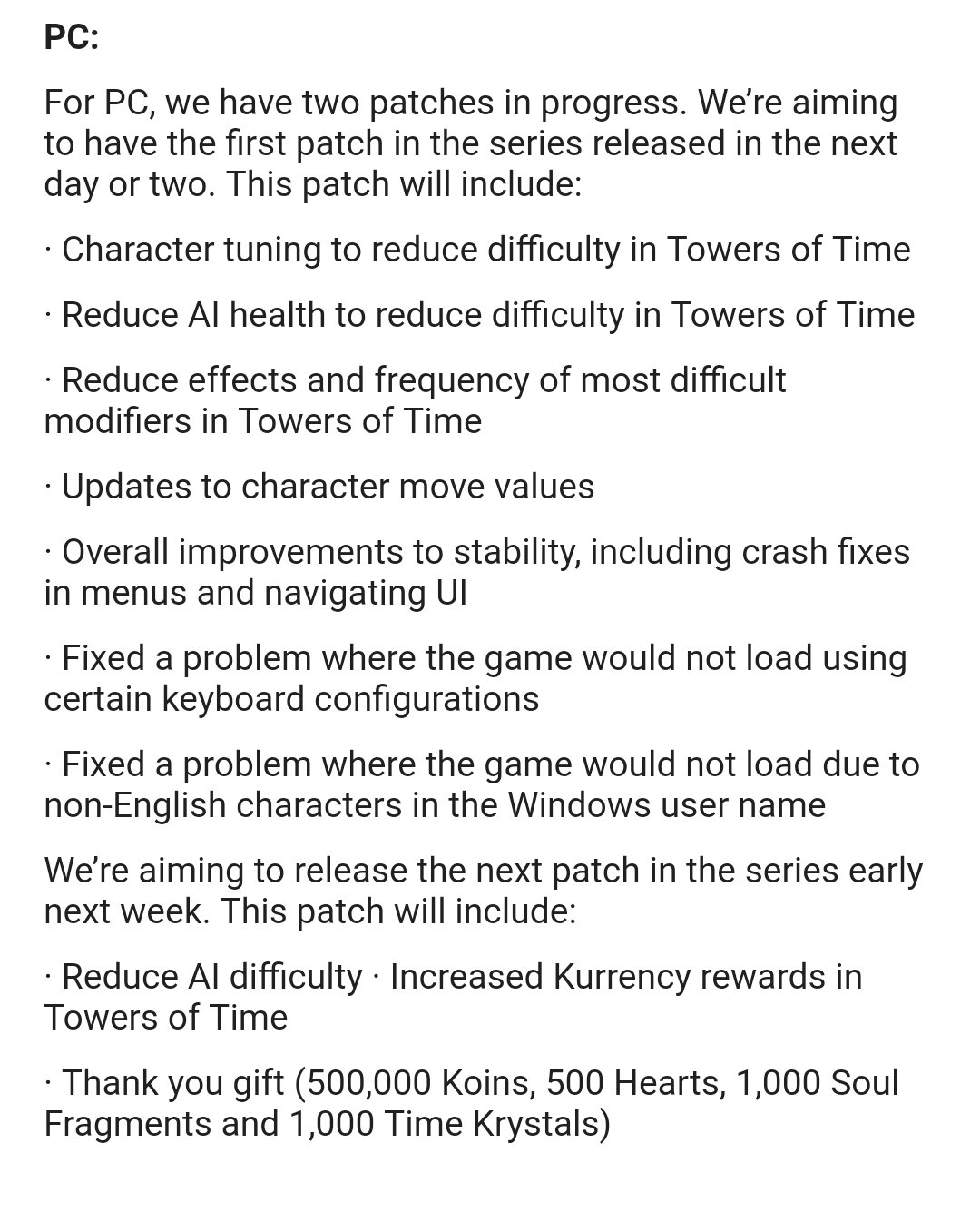 下周再调货币和时空之塔难度(还有补偿)
