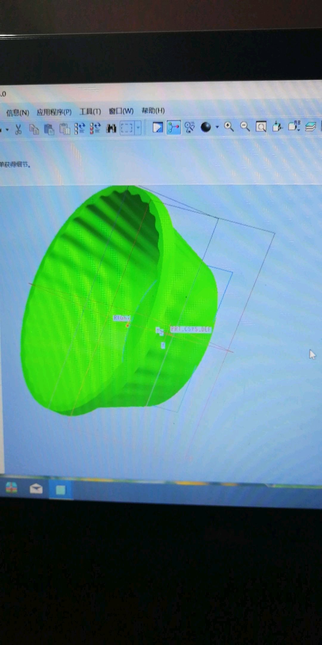 投影一根线到面上然后扫描阵列咯,我看效果底下是还有一层就再加一层大一点的圆不就OK了吗