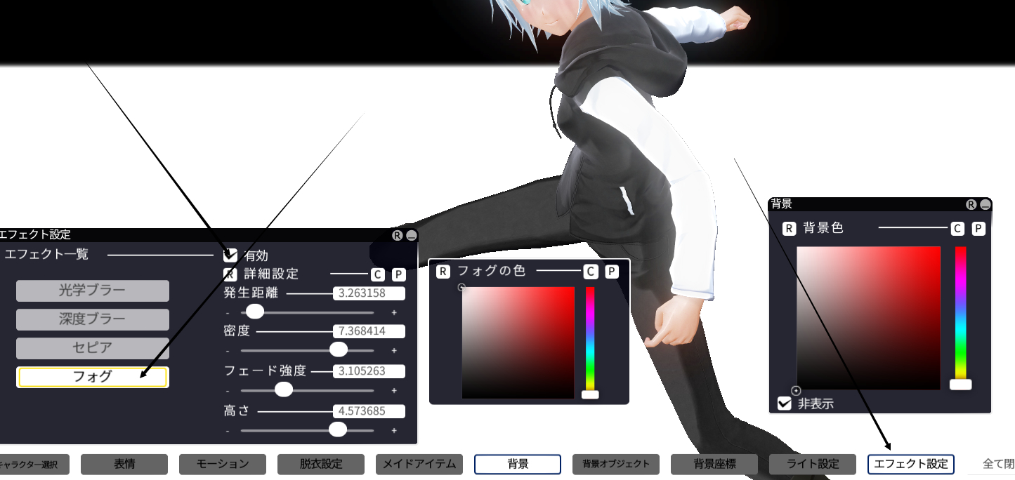 就是调光另外一个, 景深有一个调雾, 最后一选项,调节雾的高低,远近,色彩