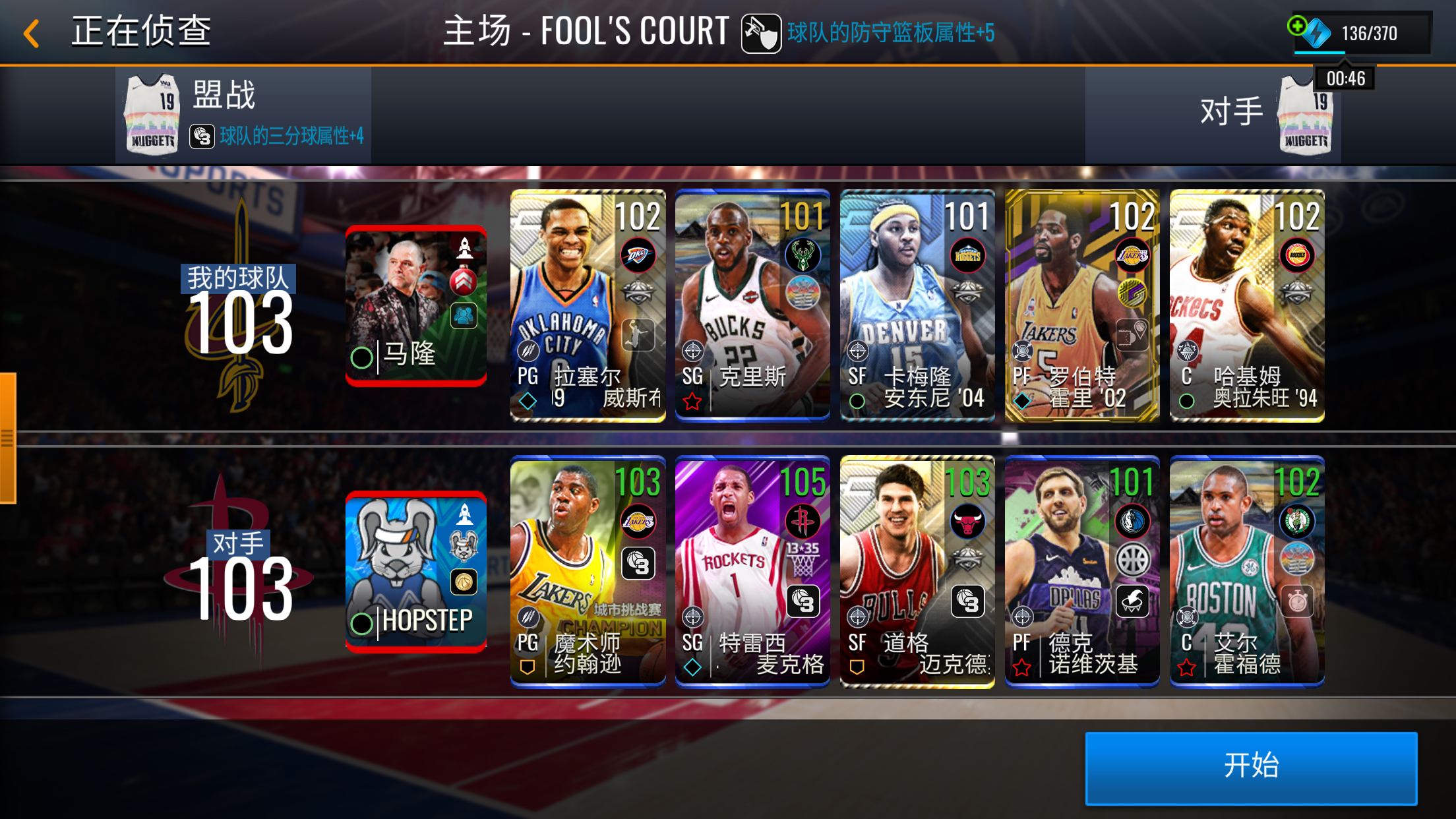 但是我想攒钱弄个压哨啊就把默里放替补了,这样就好103了吧