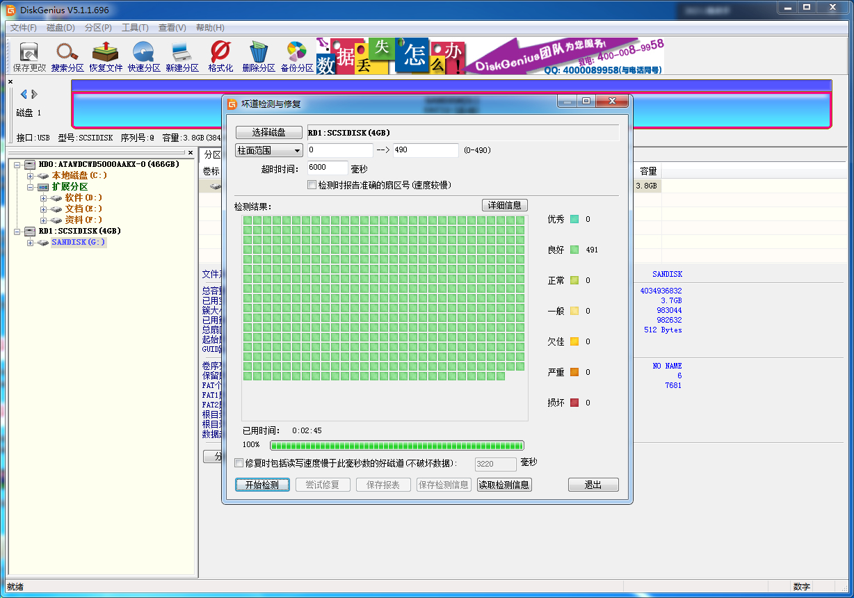 检了个硬盘一个坏道没有,又试着检测这个U盘,经常读写而且有个领导没有移除再拔的习惯,这样这U盘也是全良,感觉有点假。