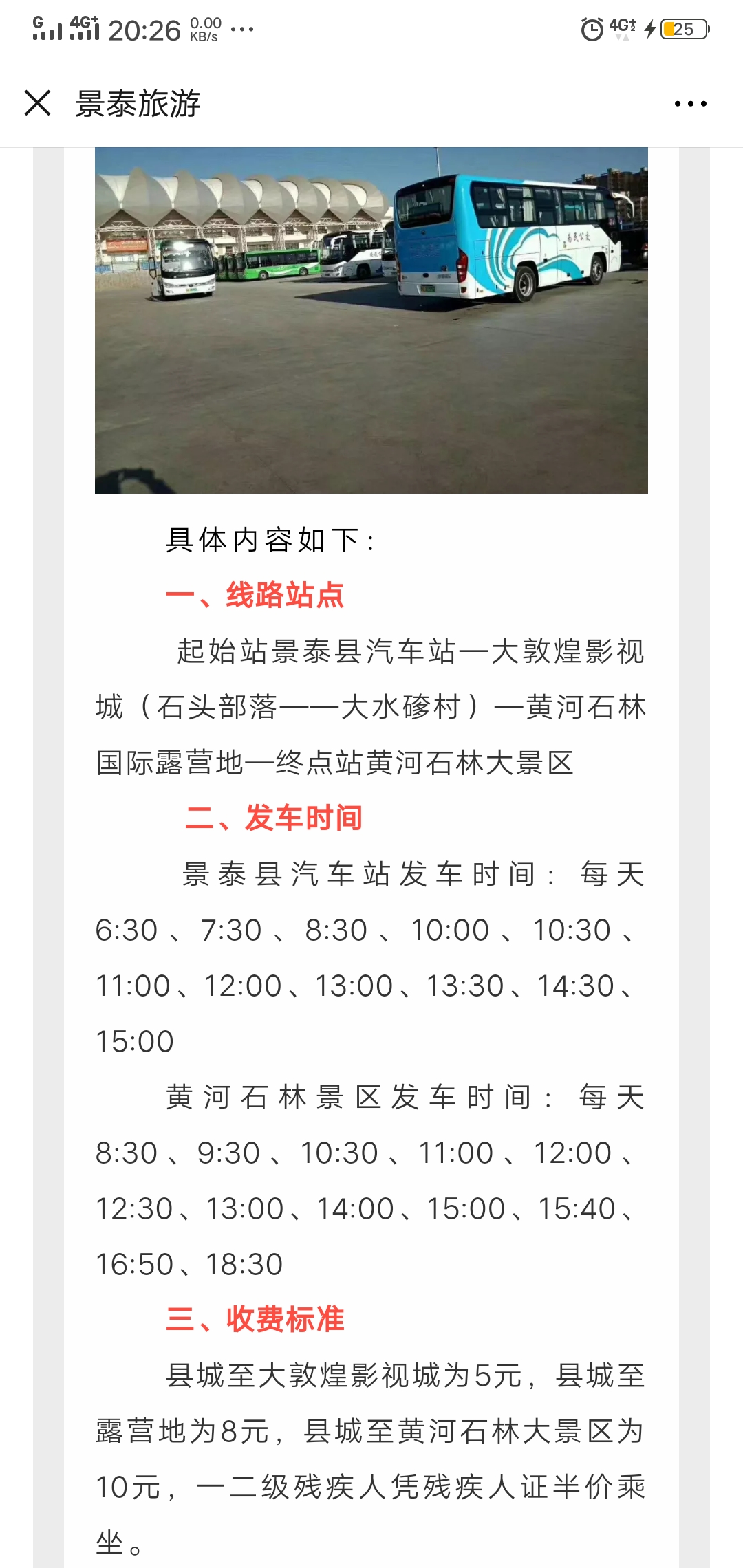 1.兰州客运中心旅游直通车,最大优点是方便,缺点是每周一班,不能进入村庄景区。2游客也可乘坐大巴到白银,再换乘白银到景泰大巴,黄河石林露营地下车换乘旅游大巴。3.兰州天水路汽车站乘坐兰州到景泰大巴,大敦煌影视城下车,换乘旅游专线。兰州景泰区间大巴每天多趟,每半小时一班。最佳方案是3号。4、景泰县城汽车站加开旅游直通车多趟次,价格虽然便宜,但只是到达景区山门,优点是增加了趟次,便于游客随时掌握时间,但缺点是,不能直接进村,增大旅游成本。适合于快游,不计较旅游交通费用支出的游客。5.慢游建议乘坐旅游大巴进出石林景区,经济实惠。景泰汽车站每天上午9:00、下午5:30分别发往黄河石林直通车一趟,票价单程22元,可直接进村;白银汽车站每天下午4:30发视频班车一班,直接进村,经济实惠。更多旅游信息请浏览 百度贴吧:黄河石林金龙客栈