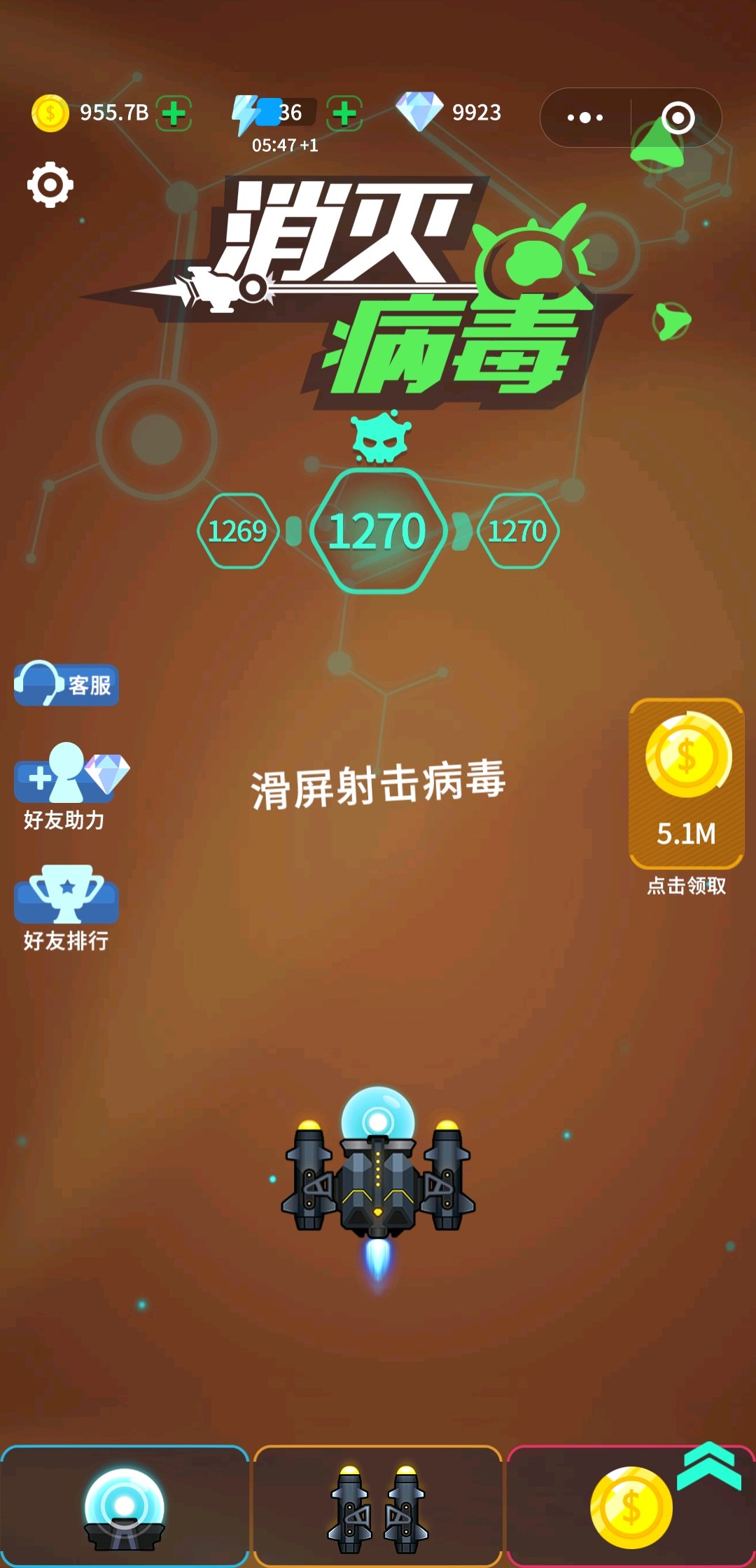 你用跟踪导弹试试,不需要一次性把病毒都打完,第一波打不掉,就躲过去,打第二波