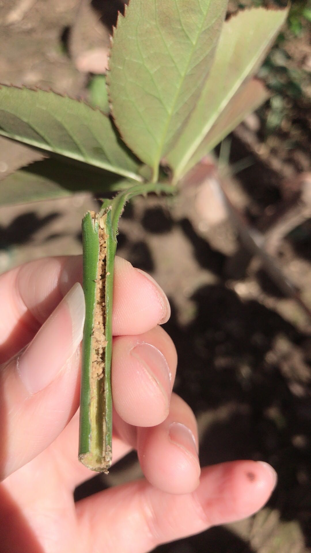 暴笋遇到茎蜂了,😭,虫已经被我剪成2断,笋剪开是这样的,这是