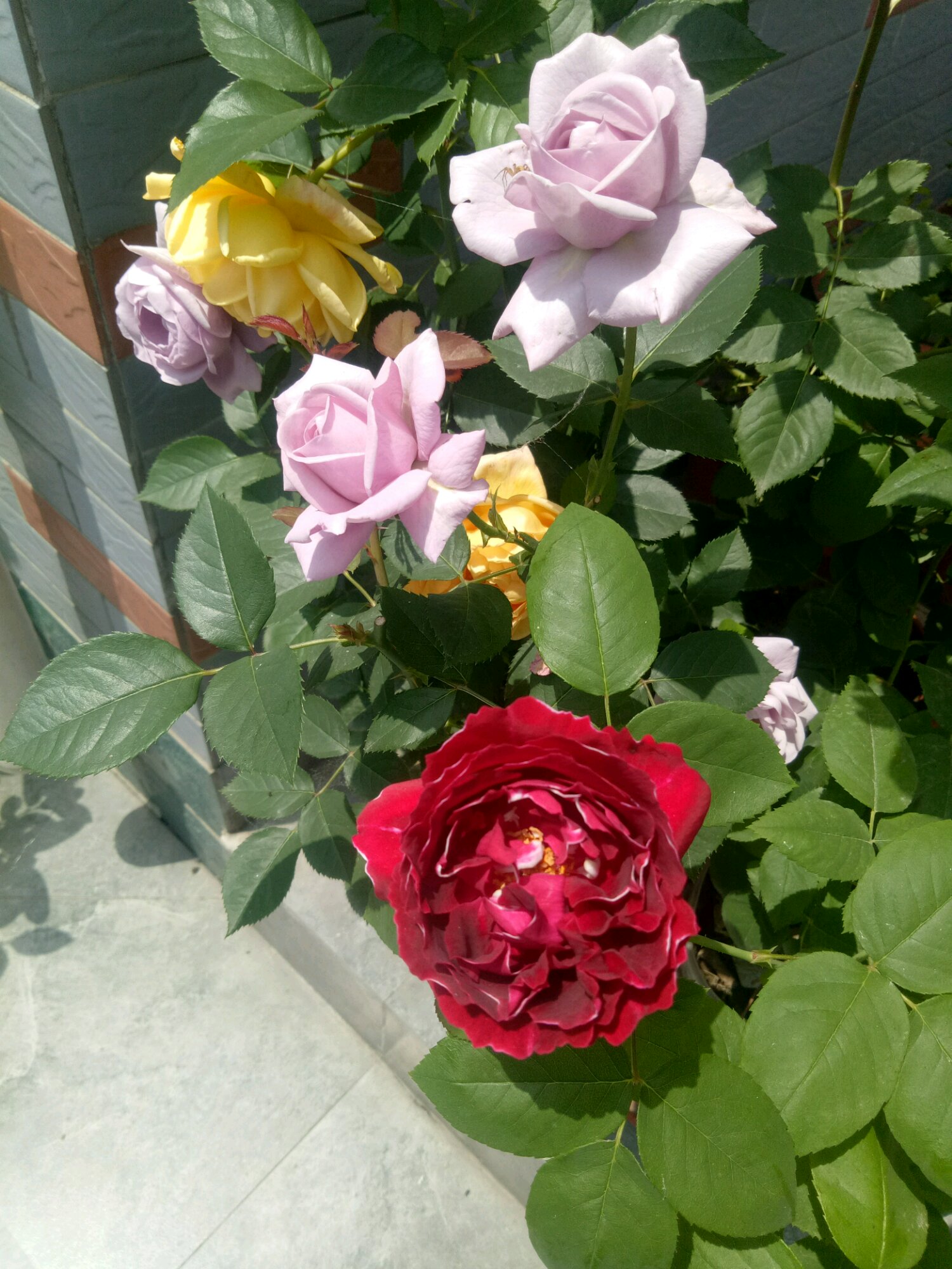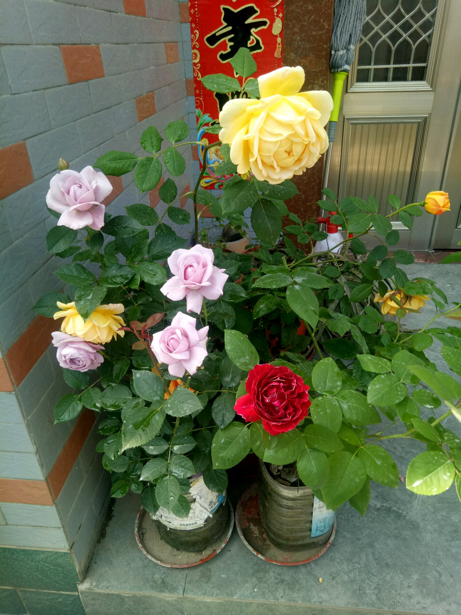 大神们帮忙看看是什么品种,黄色的是王妃还是黄色庆典,,蓝色风暴有标签,红色的也不知道是什么