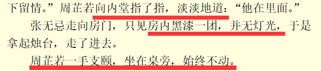 这里周芷若不即杀谢逊,似乎于逼死张无忌略显多余。但仔细区分,【“谢逊若死,张无忌心中大悲”,死于三僧掌下】与【担心谢逊身死,后悔濠州婚礼舍周芷若而去,心力交瘁,死于三僧掌下】是有本质区别的。于前者,张无忌是死于悲,于周芷若更多地或许是恨;而后者,张无忌是死于悔,于周芷若更多地却是恼与愧(也有对义父的愧)。杀人诛心,莫过如此!