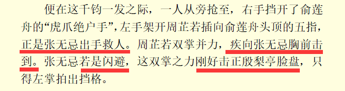 在张无忌陷入死局,韦一笑抢上欲解救谢逊时,有下面一段描写。