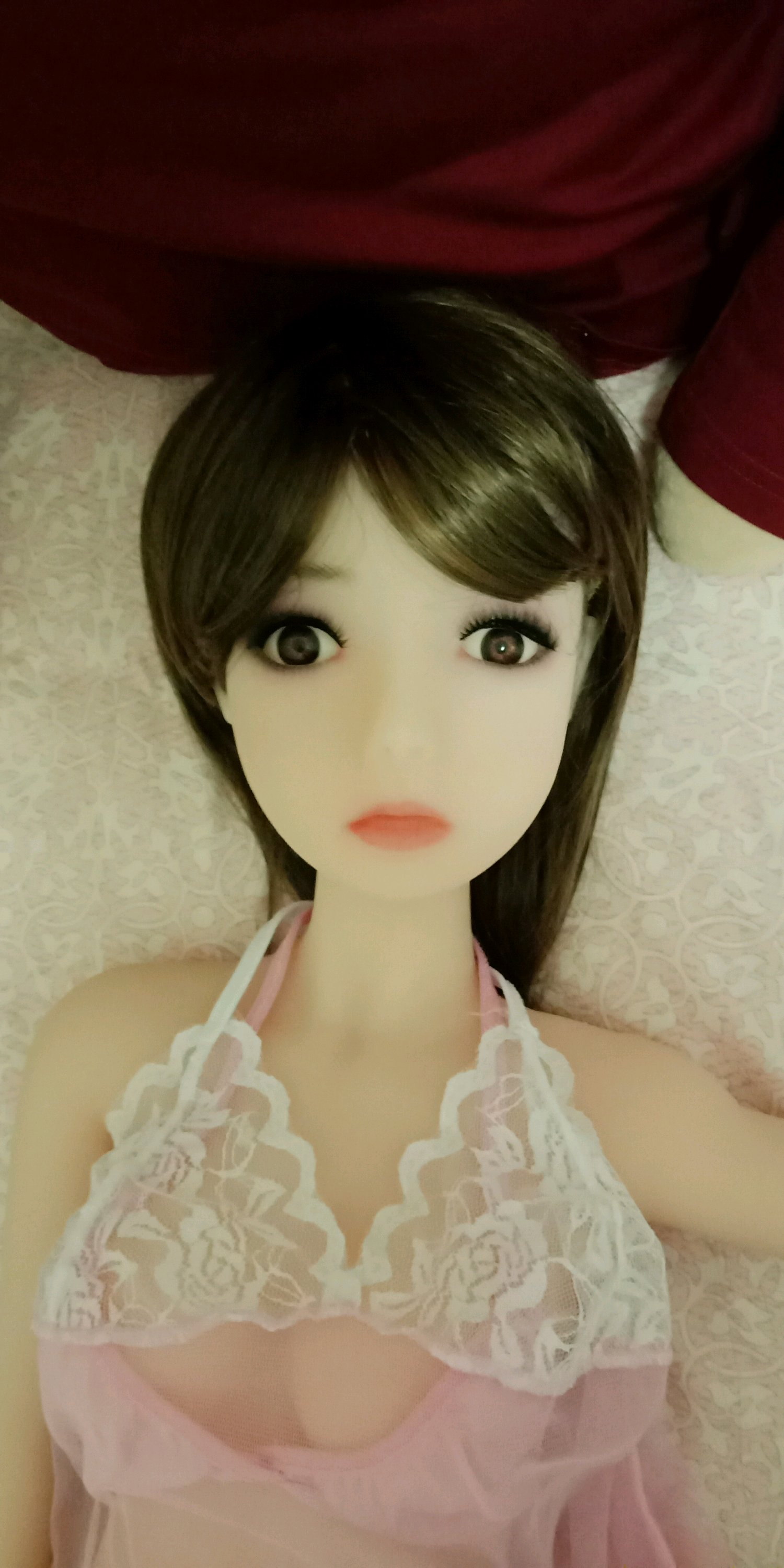 太沉了,好几十斤,和娘一起努力抬了上去…折腾了好久终于勉强给娃娃穿戴好放床上。送的粉内衣有点尴尬,以后再买别的衣服穿了。my girl