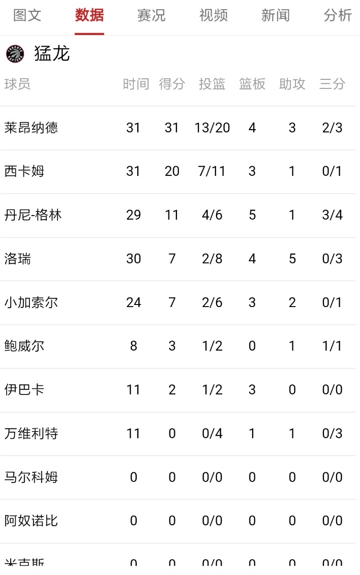 小卡一个人打一个队,西亚卡姆偶尔帮帮忙,其他人直接萎了