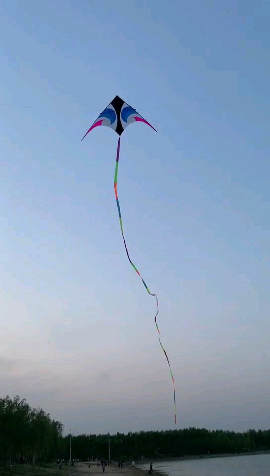 天眼,不挂尾巴拔高,来风就到头顶。。仰的脖子难受,挂上15厘米50米尾巴好点,清盘了,拉力真不是一般的,线嗡嗡响,这还是3级风。。。花了1个半小时收下来。。。累的一匹,以后再也不乱放线了。