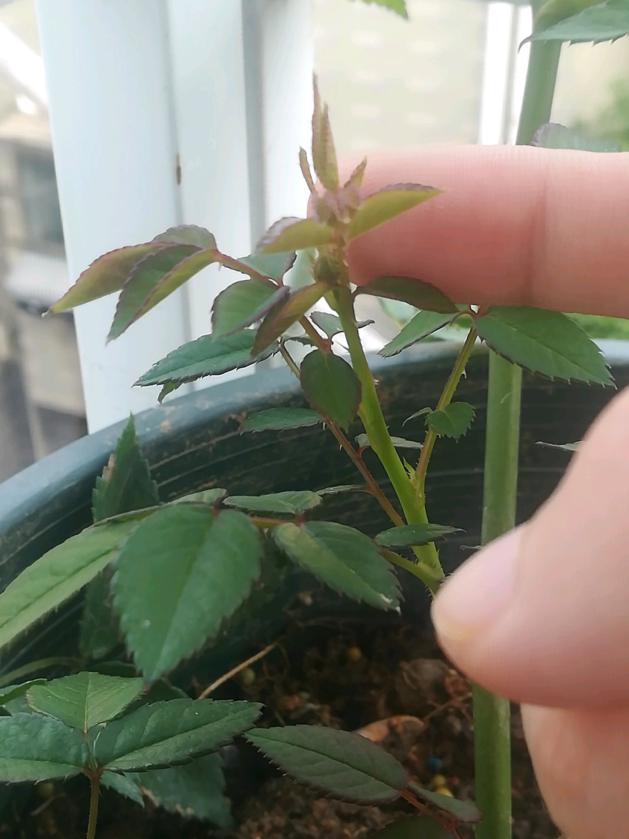 玛姬婶婶真的很厉害啊!买的小苗来时满头苞,修剪了下株形,没期待它长花苞。还没过一个星期,就看见一个花苞了