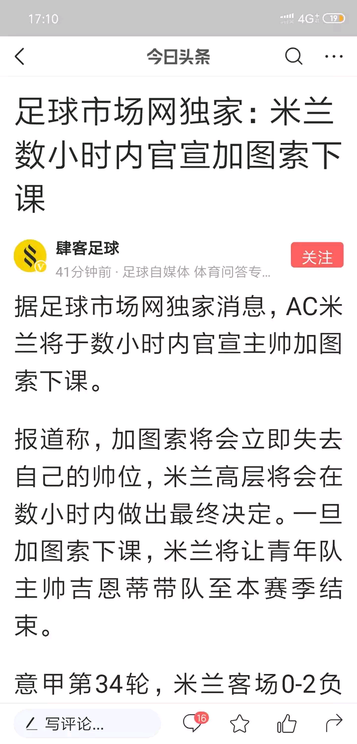号外: 米兰将在数小时内宣布加图索下课