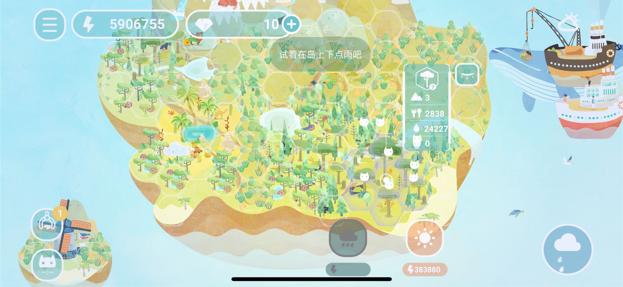 改七格神木林可以浇满,但是莽原不能可以满水哦,要像变三格莽原一样保持是草地才可以~