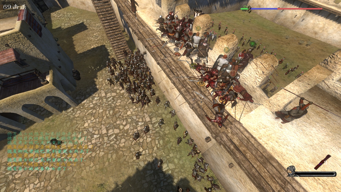 忘记哪个城了,反正类似的2层城墙的都有这个bug 会有一大堆兵卡在城墙下面。。。