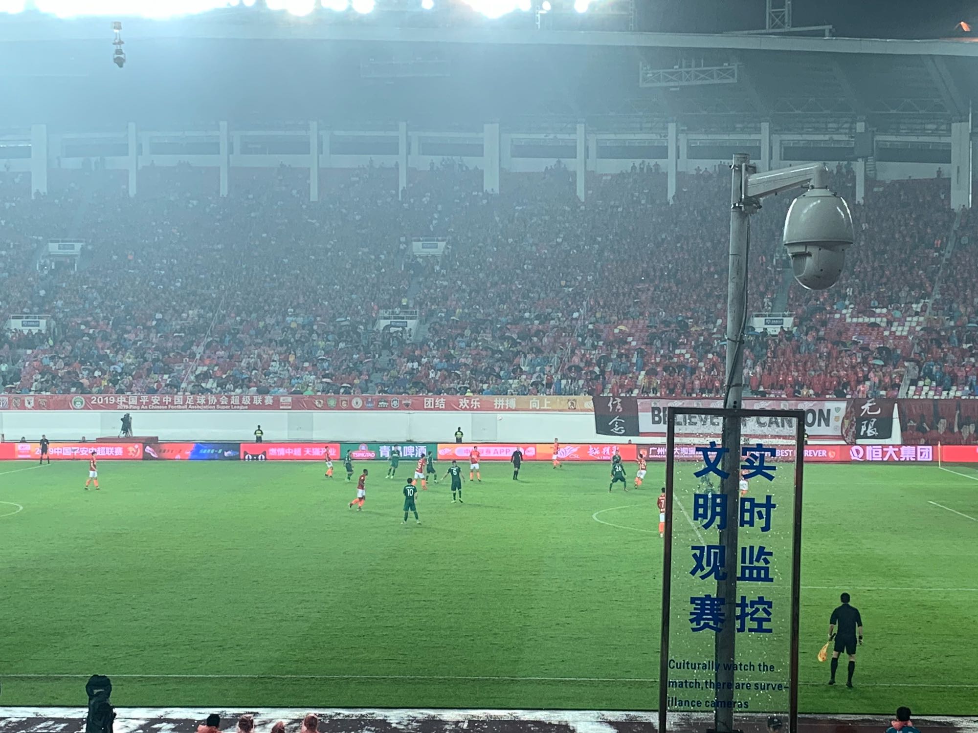 聊聊这次的感受,广州球迷其实很会自娱自乐,他们对恒大的忠诚感可能只体现在南看台那一小部分年轻球迷上,我坐的1区多数是500元票位的散客和赠票,所以不懂球的居多,整场大部分人都很安静,完全没有工体那种全场参与的感觉……不过从另一个角度,这也比我去年在鲁能客场主队球迷区看时的体感舒服多了。