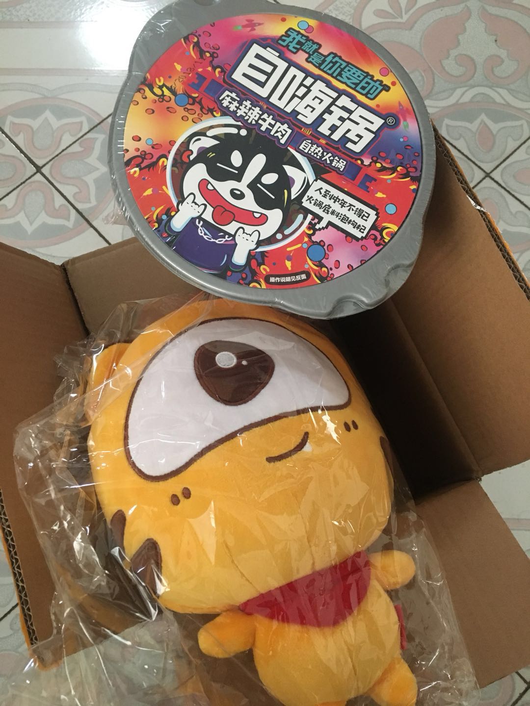 上面是真实的礼物图~~~火锅包装密封良好!!虎牙布偶大概30厘米长,摸起手感相当的不错~~~~~