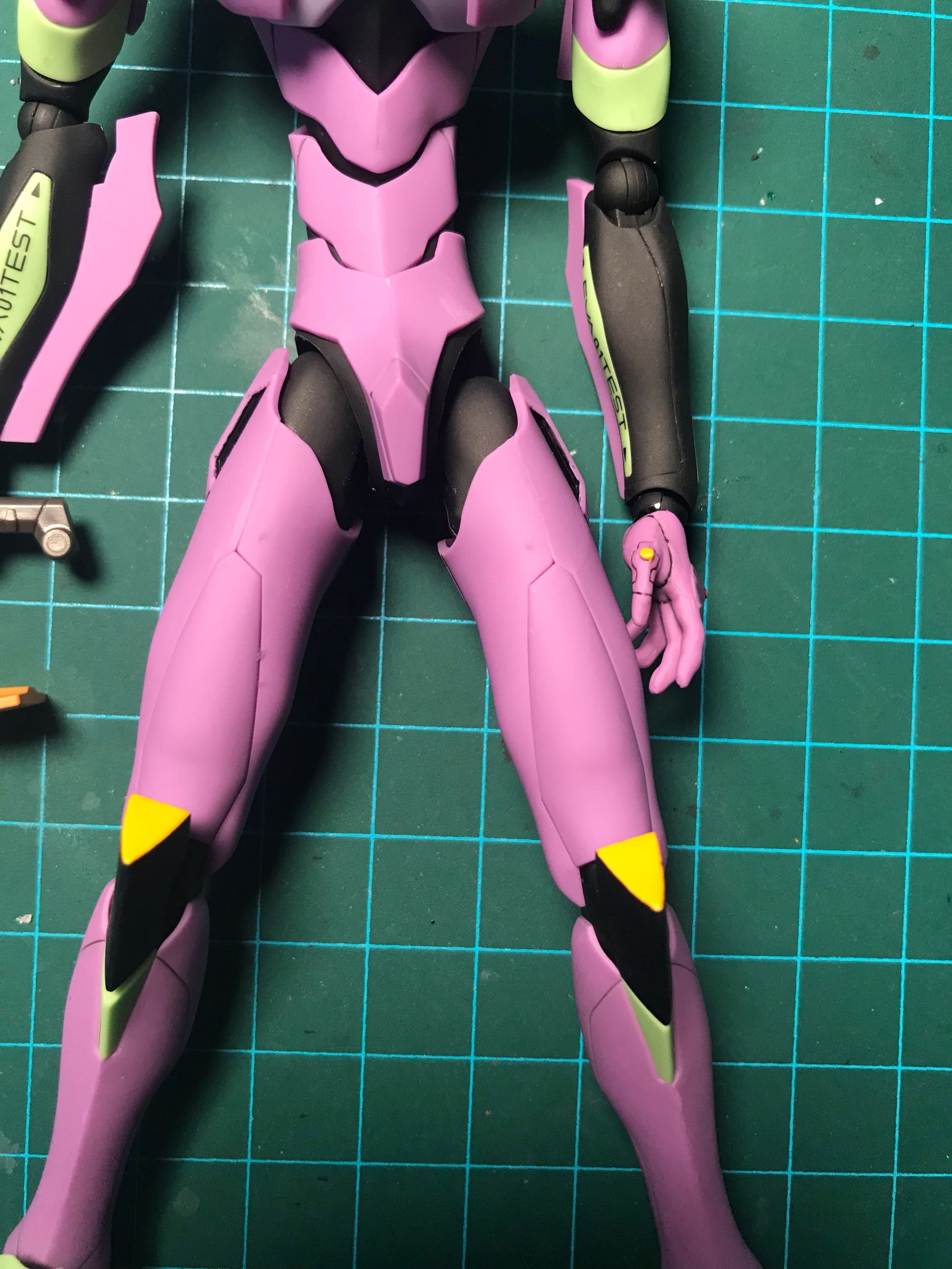 腿部的弯曲可动对比。相比来说寿屋的大腿长,小腿短,弯曲后可以完美贴合。万代剧场版大腿相比LM做了加长修改,弯曲程度也增加了