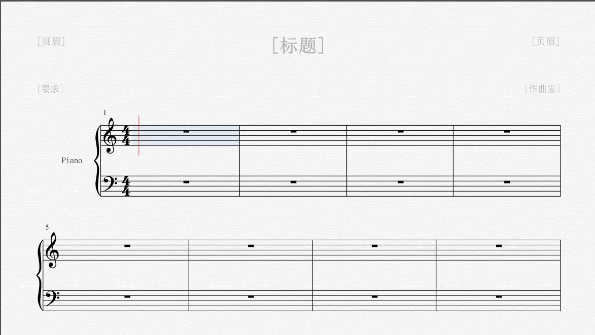 新建的乐谱如上图所示,想要制作四手联弹的谱子,我们需要用添加音轨的方法来实习这个想法。