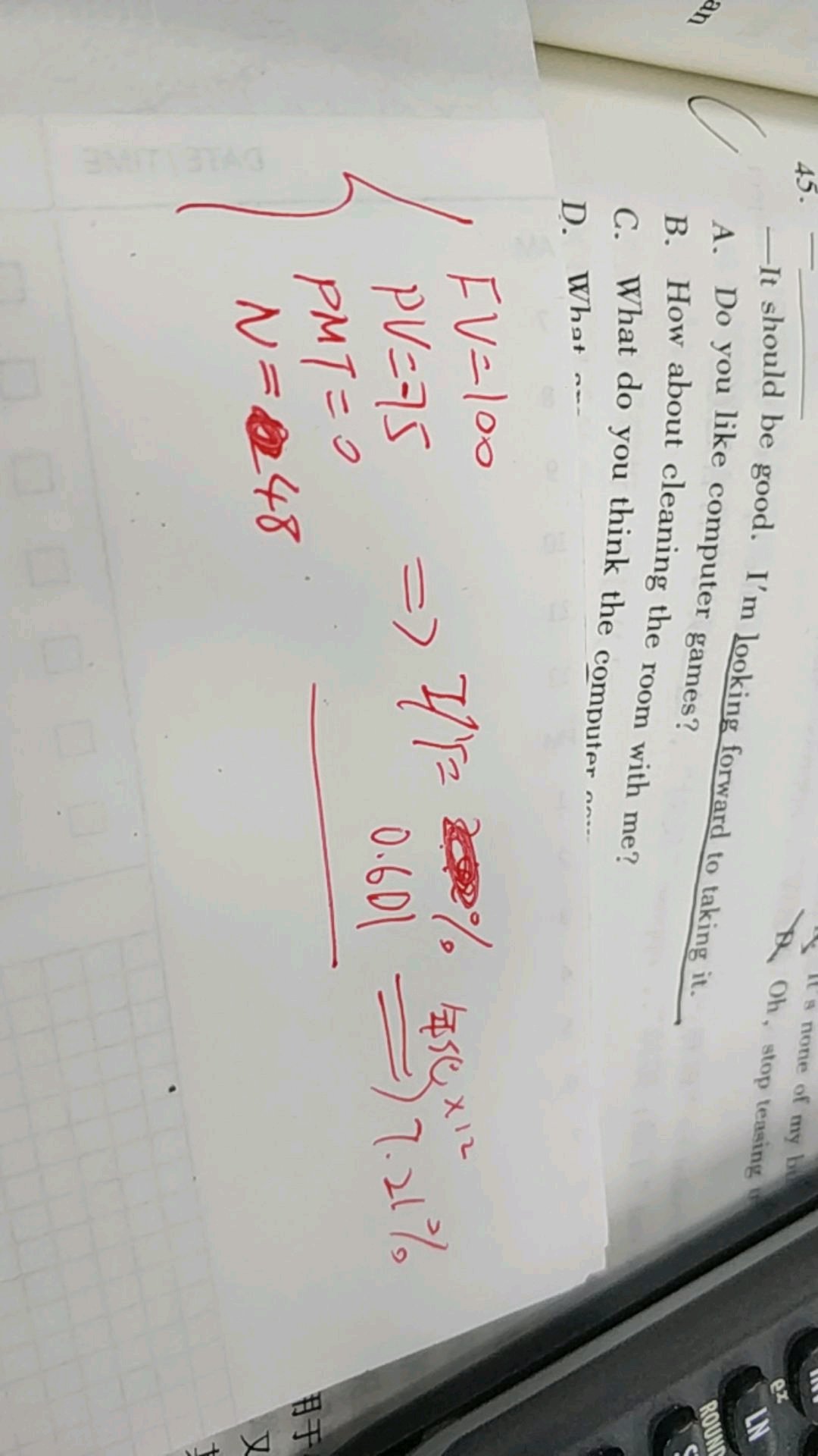 这道题有人会吗?不知道它的公式怎么来的。我算的是C.有哪位大神能帮忙看看?