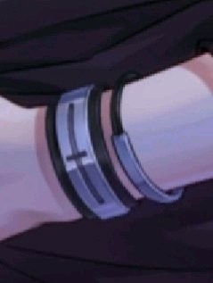 画图的风格给我猜材质带来了很大的困难,所以不一定对……但按经验来说,是这样的。说三圈的原因是这种形态看上去不太可能是分开戴的,分开的话按画风会明显分开……但也有可打脸……_(:з」∠)_