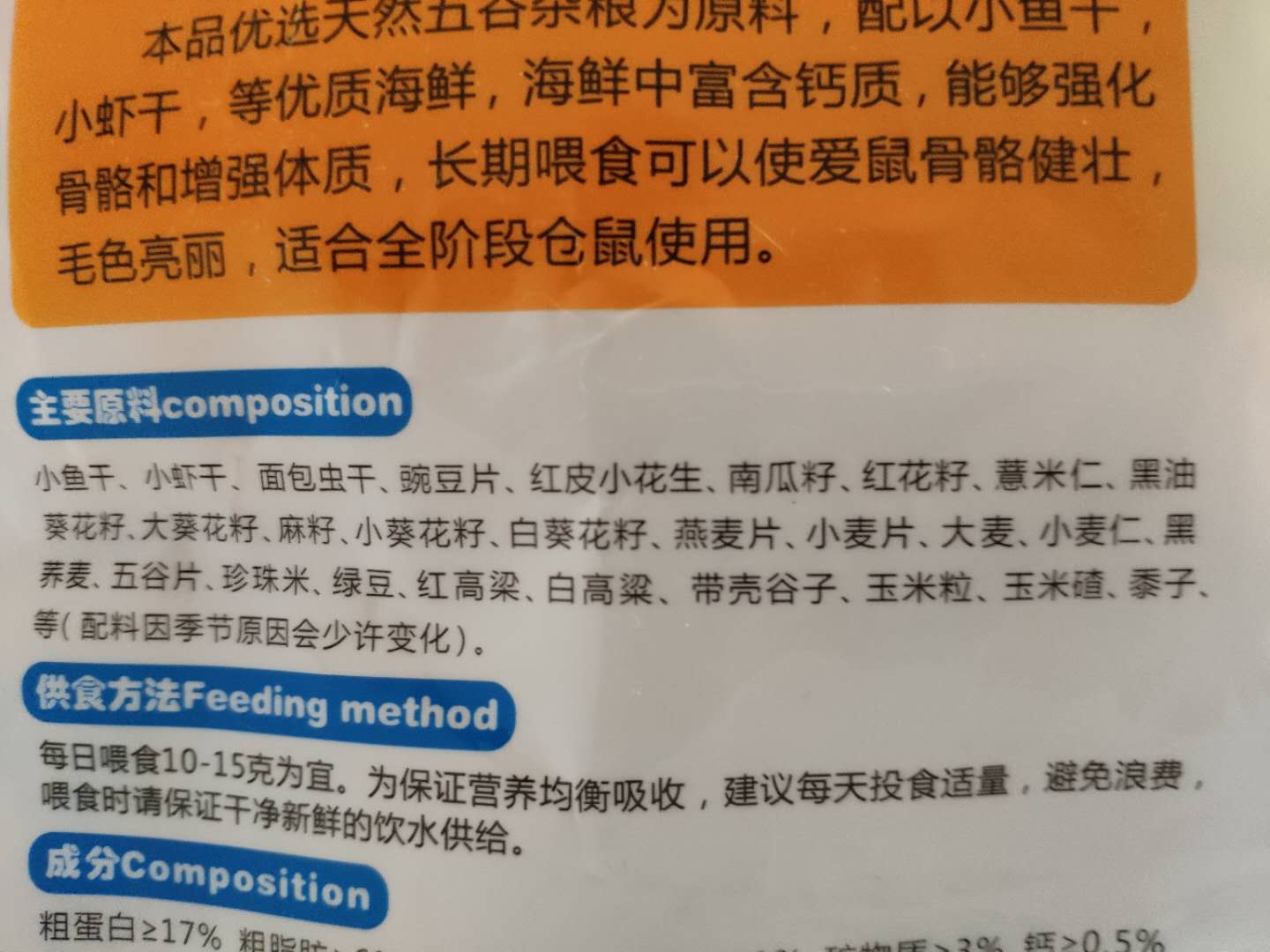 某海鲜粮,其实就是常规渣粮混入几粒小鱼干而已,往下看就知道。