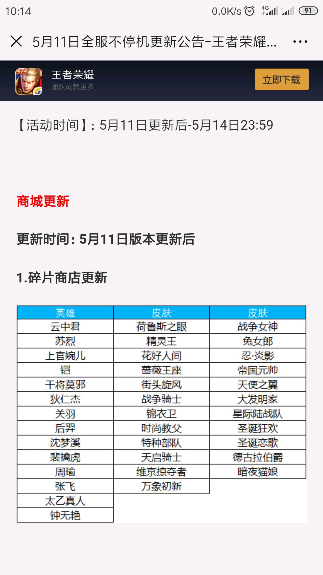 今天5/11更新内容和官网不一致啊 官网的碎片商城里面有德古拉伯爵 而更新后少了个德古拉伯爵多了个妲己的拉斯维加斯