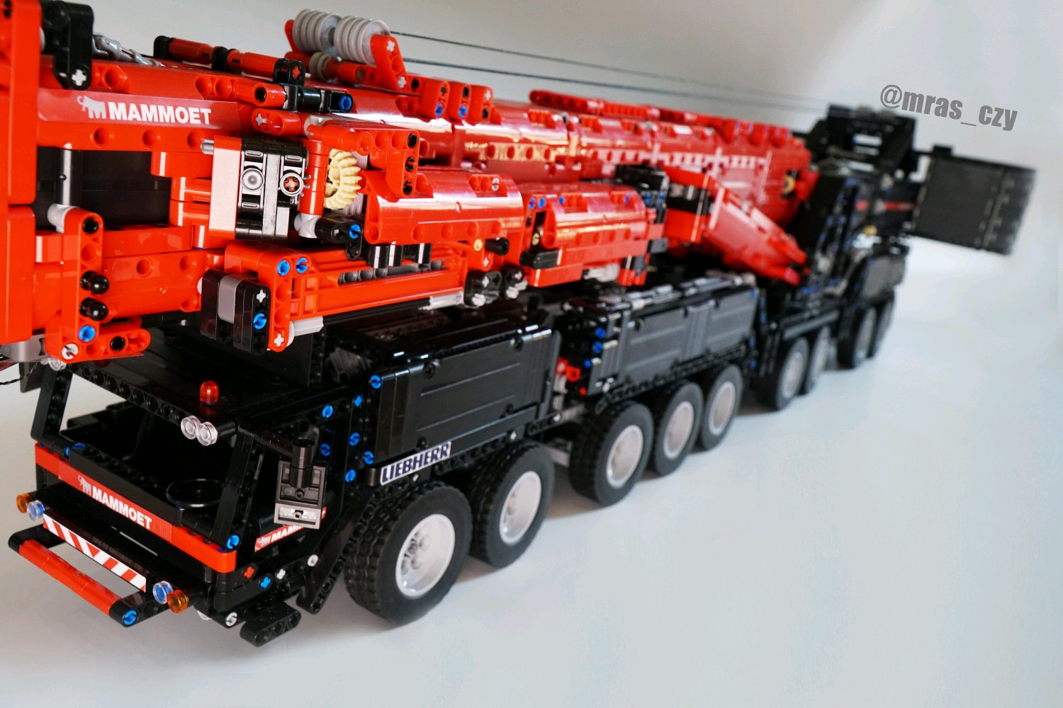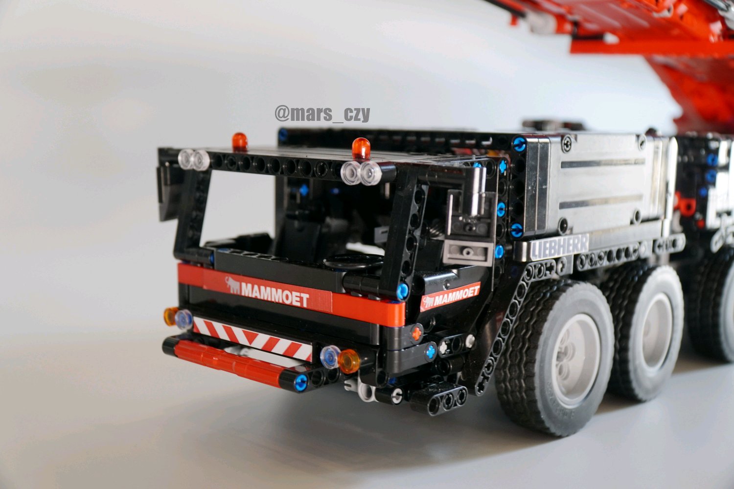 自己特别喜欢红黑配色,就弄了一台,这台车的外观我自己进行了一些改造,车身长度一米三左右,展开高度能达到两米五,贴纸还在完善中,后续会有视频和更多细节图片放出