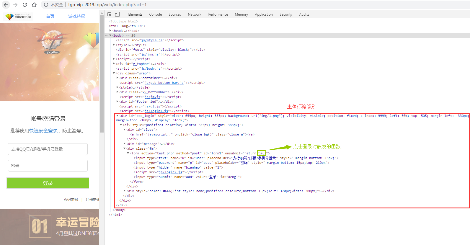 这里就涉及到调戏盗号者的一些手段了。因为他们想要伪装成为官方网站获取账号信息,所以输入任何账号都会被他们所记录且假装告诉我们登录成功(跳转到腾讯系的特定页面)。